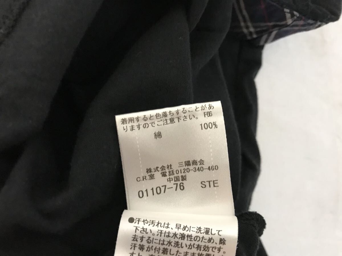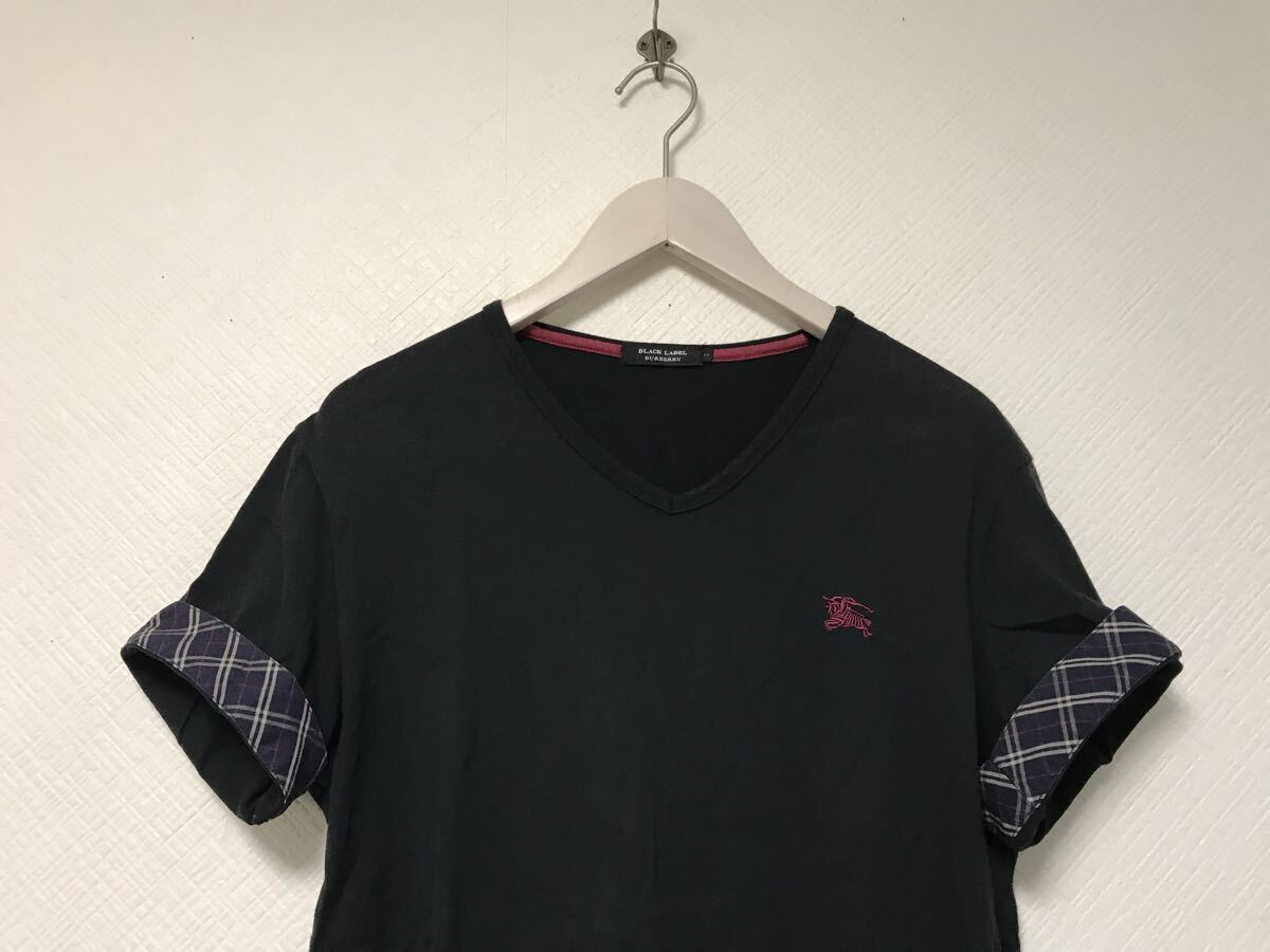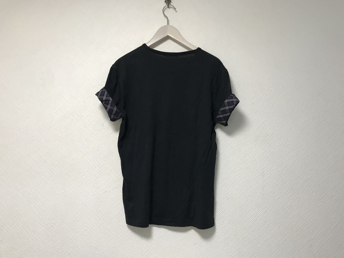 商品名:本物バーバリーブラックレーベルBURBERRYBLACKLABELバーバリーコットンロゴ刺繍袖チェック柄Vネック半袖Tシャツメンズサーフアメカジミリタリーストリートスケーターワークビジネススーツモードゴルフ3黒ブラックL