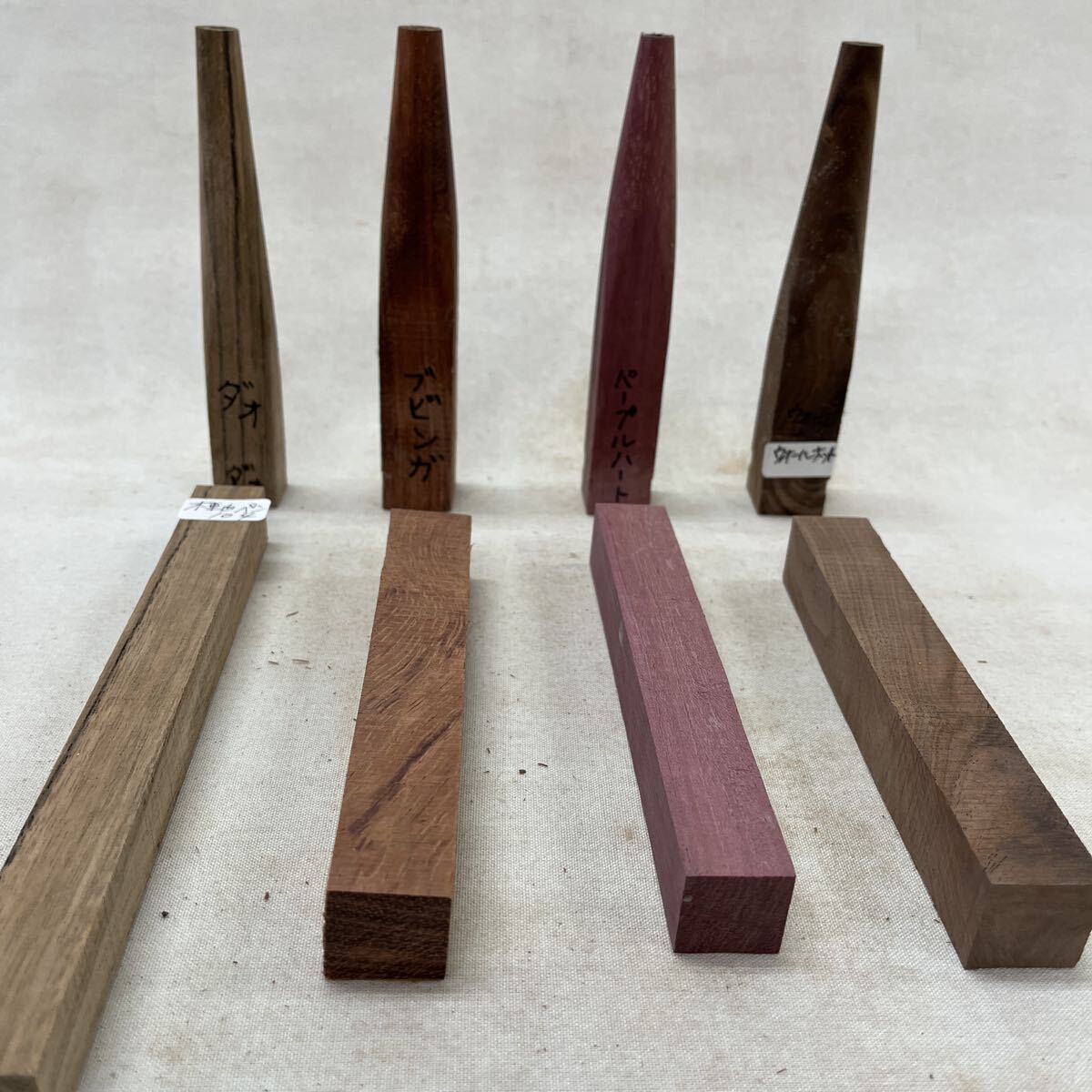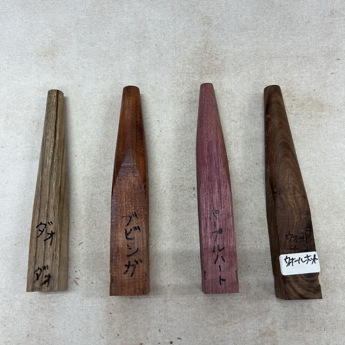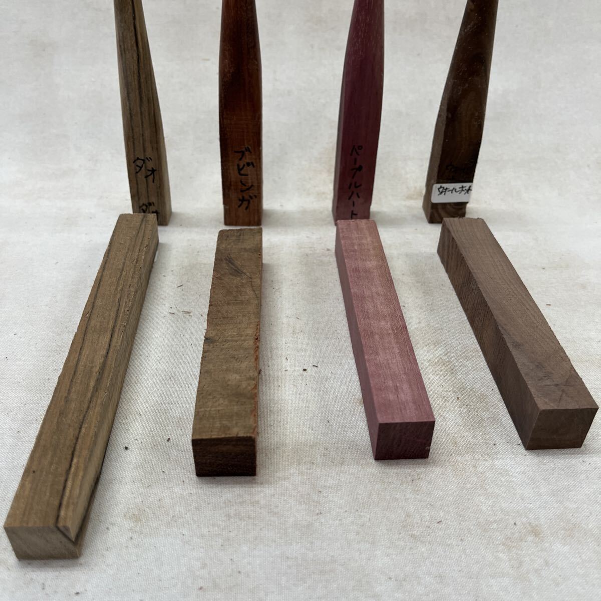 ダオ、ブビンガ、パープルハート、ウオールナット 4本セット