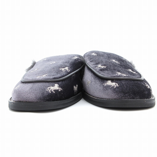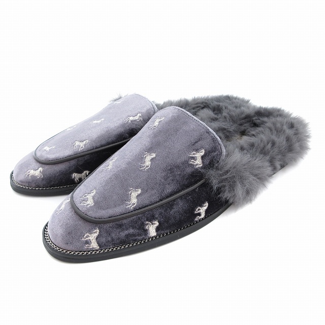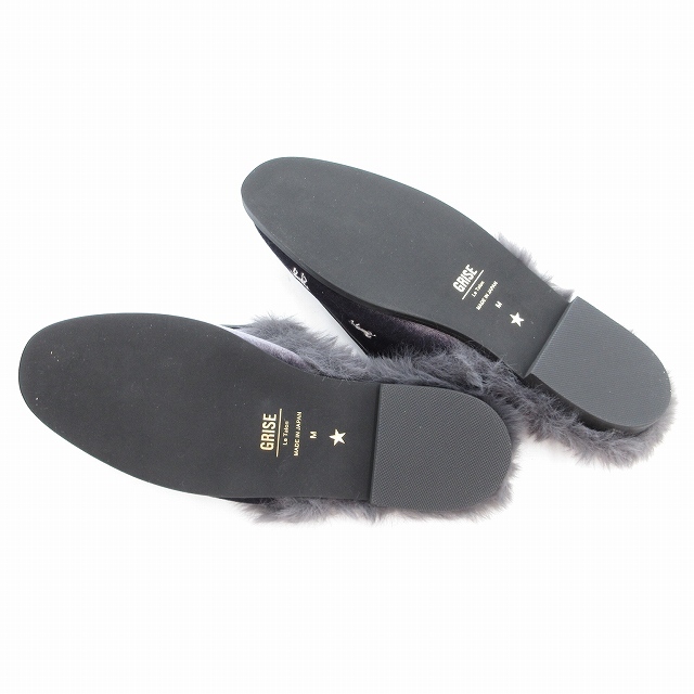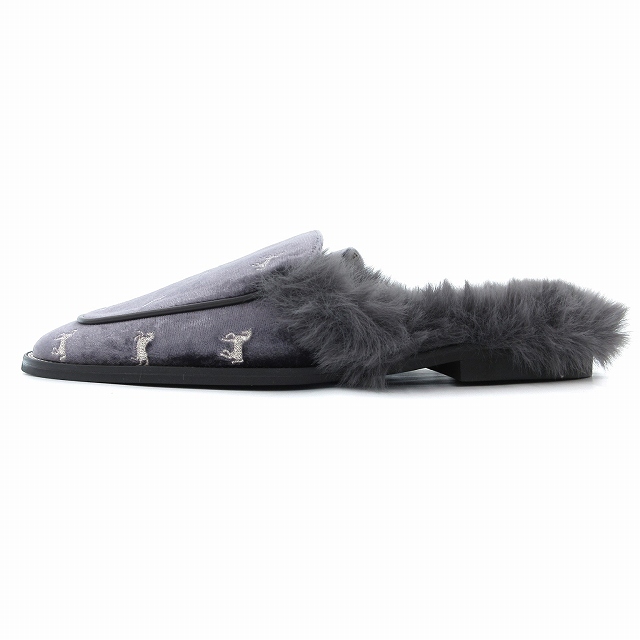ルタロン Le Talon 美品 GRISEエンブロイダリーファースリッパ シューズ M グレー /AE レディース