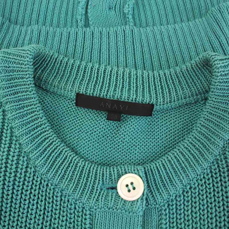 アナイ ANAYI カーディガン ニット クルーネック 長袖 38 青緑 101519-16-070-61-380 /YM レディース