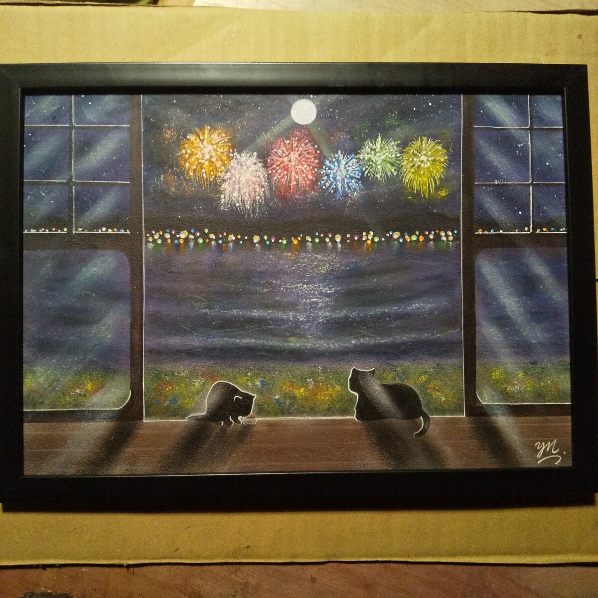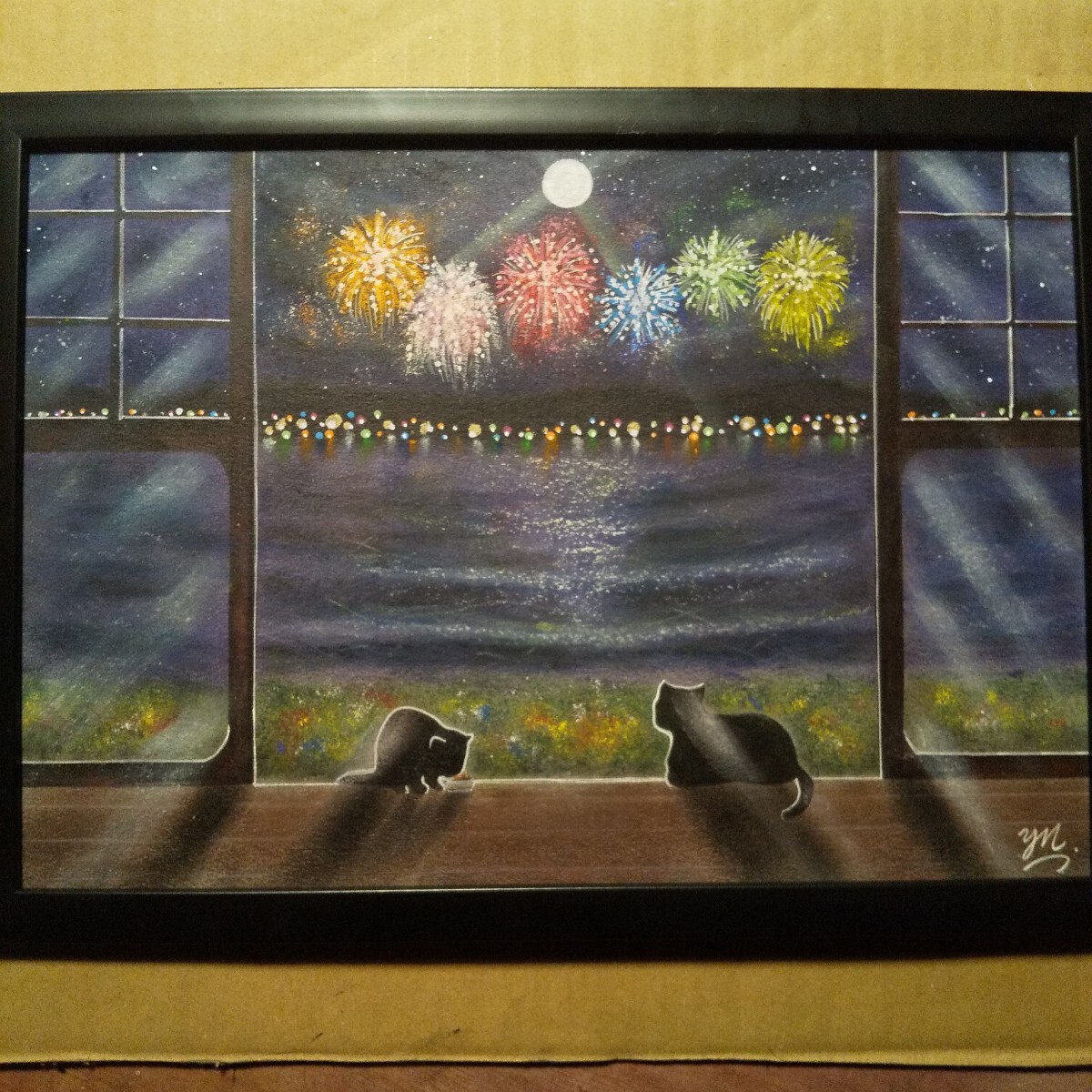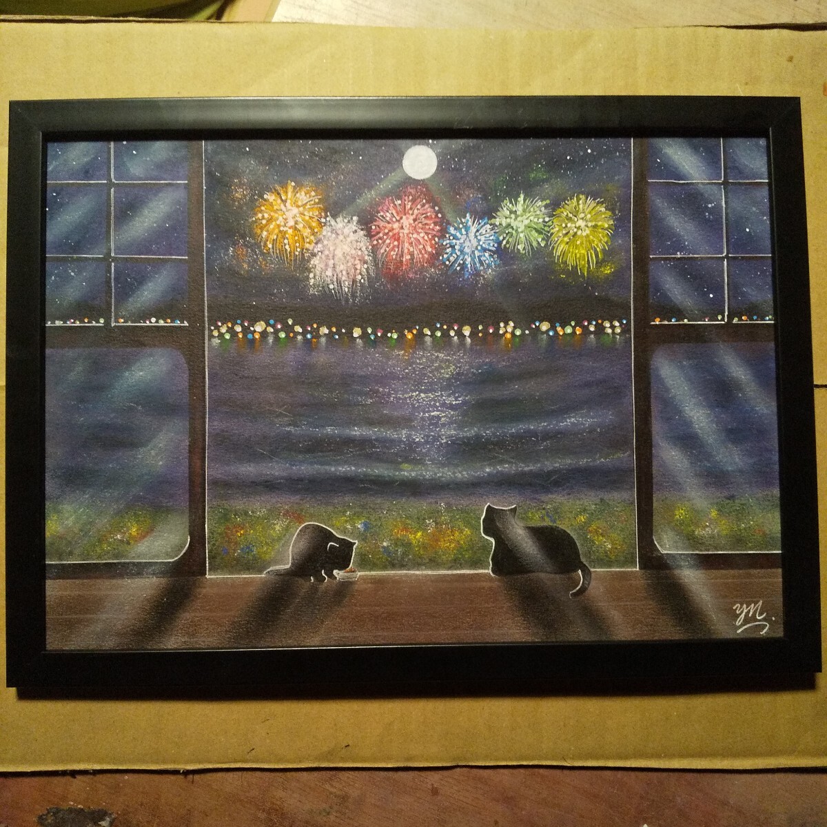 粗めの紙に描いていますので少し離れて飾るといい感じのインテリアになるかと思います。