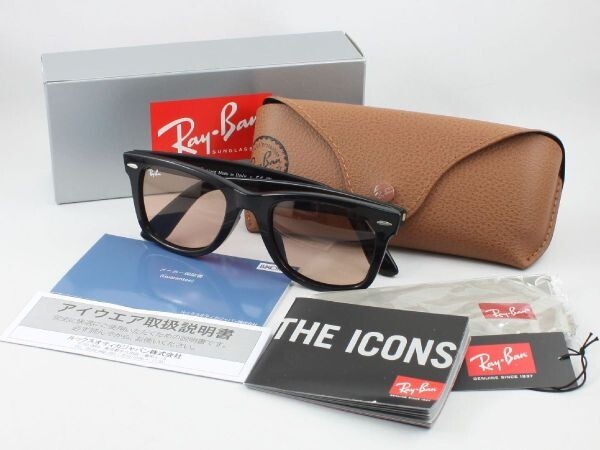 ケース茶 Ray-Ban レイバン RB2140F-601/4B 52サイズ サングラス WAYFARER ウェイファーラー ブラック ライトオレンジ ライトカラー 6014B