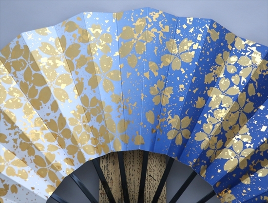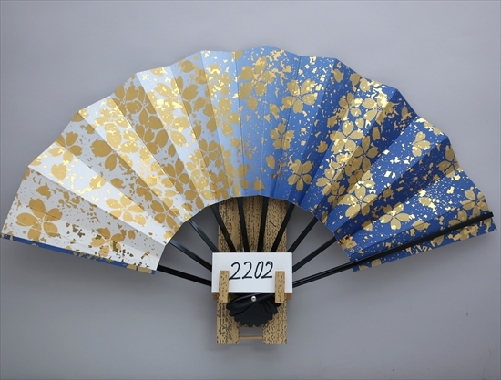 舞扇子 A2202 金泥桜 金箔ちらし 青横ぼかし 【箱なし】