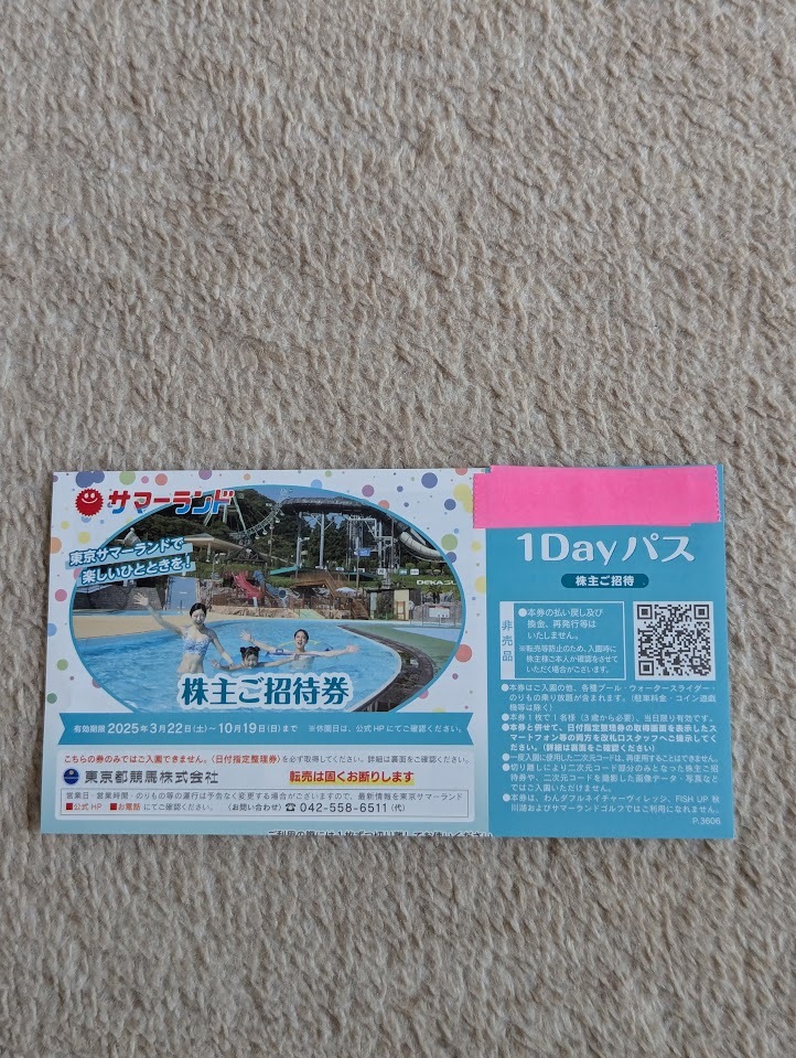 ★即決有★最新★東京都競馬株主優待券★サマーランド★ご招待券★1Dayパス★サマーランド優待★