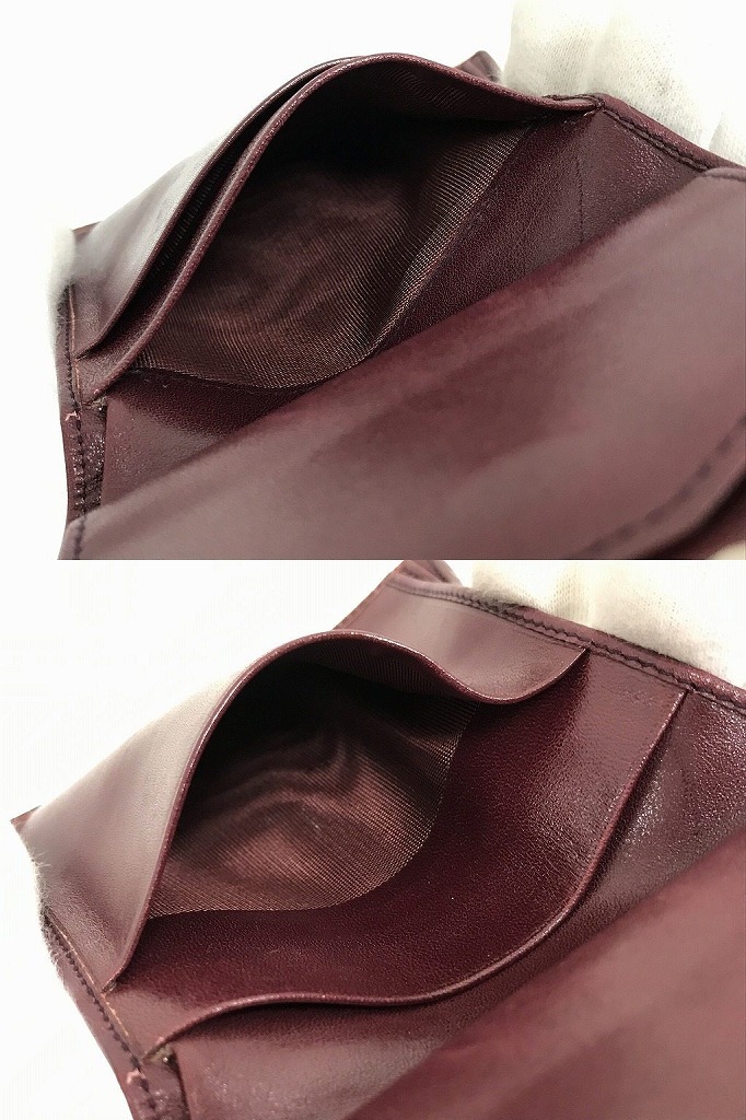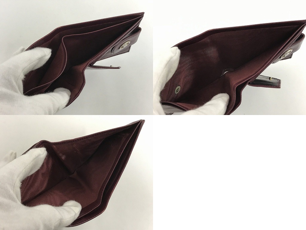 備考仕様/ 開閉:スナップボタン    内側:スナップボタン開閉小銭入れ1 札入れ1(仕切り1) ポケット3   外側:ポケットなし   カラー:ボルドー