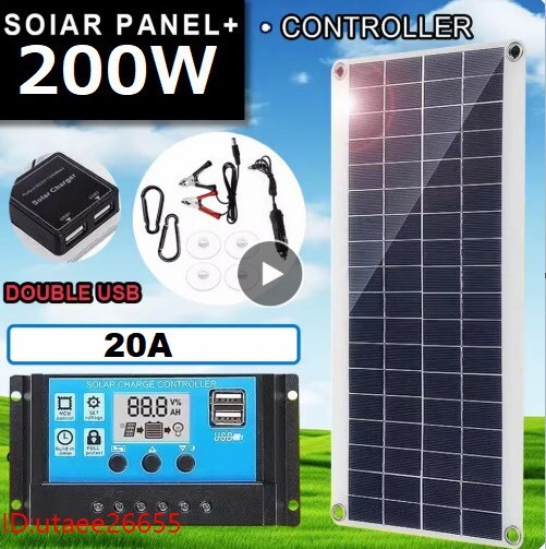 ソーラーパネル12V,200W,充電器付き,屋外用,20a,電話,rv,車,mp3用