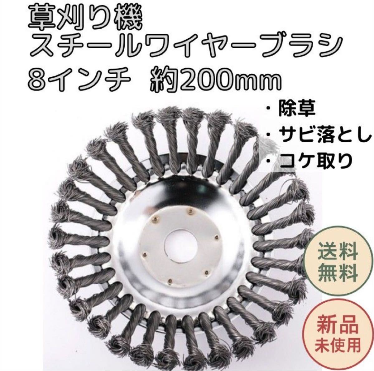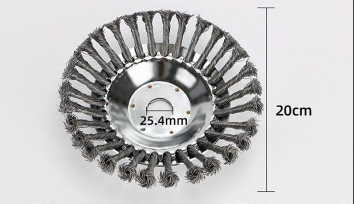 草刈り機用スチールワイヤーブラシ 8インチ 約200mm 広範囲対応 除草 サビ落とし コケ取り 高耐久鋼線 替刃 アタッチメント