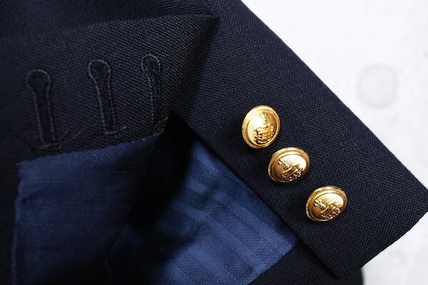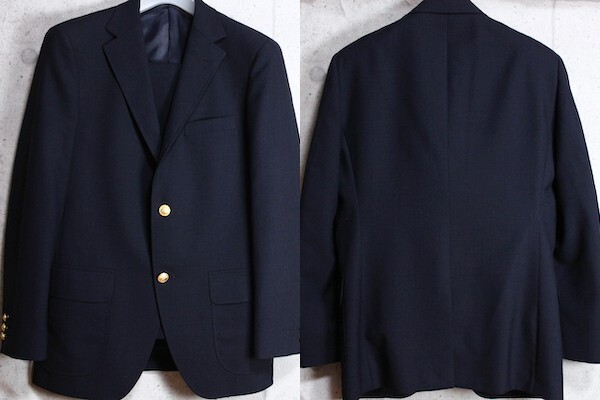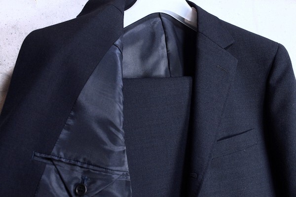 仕様:背抜き仕立て、段返り三つ釦、センターベント、ノータック、AMFステッチ、本切羽
