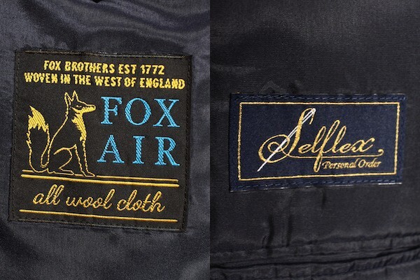 オンワード樫山の(ONWARD)のオーダーメイドSelflexの 日本製 英国FOX BROTHERS FOX AIR 金ボタン スーツ。