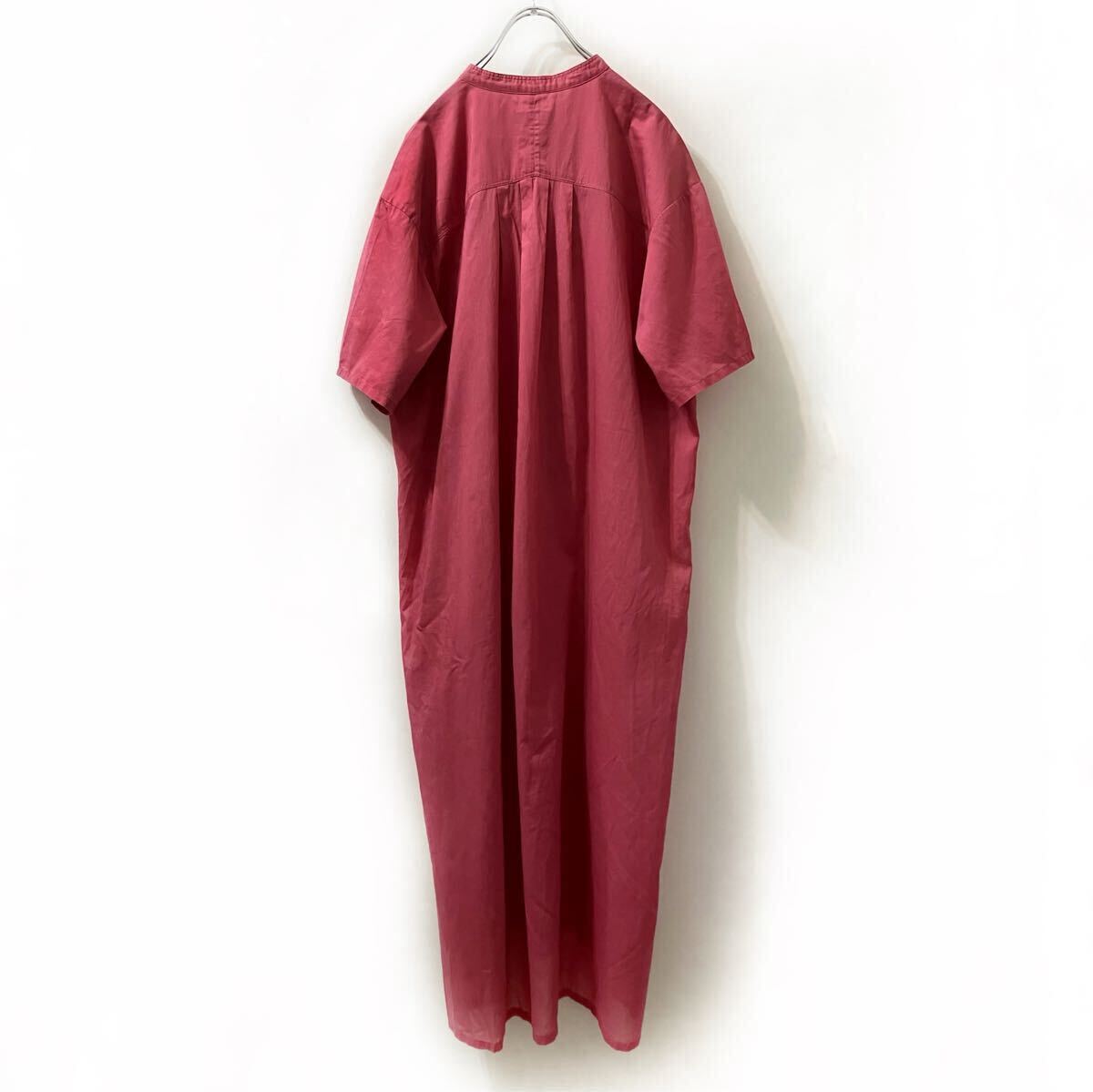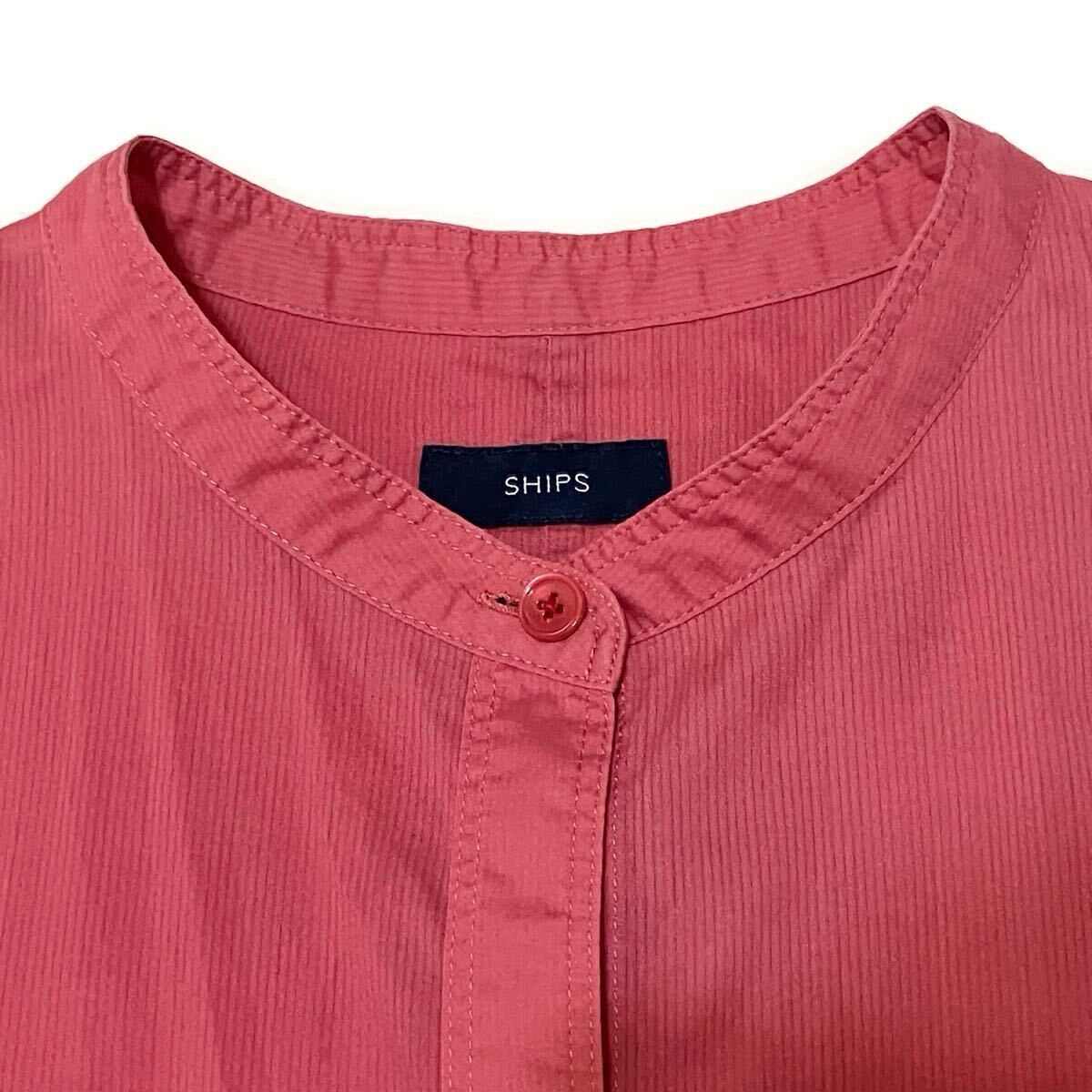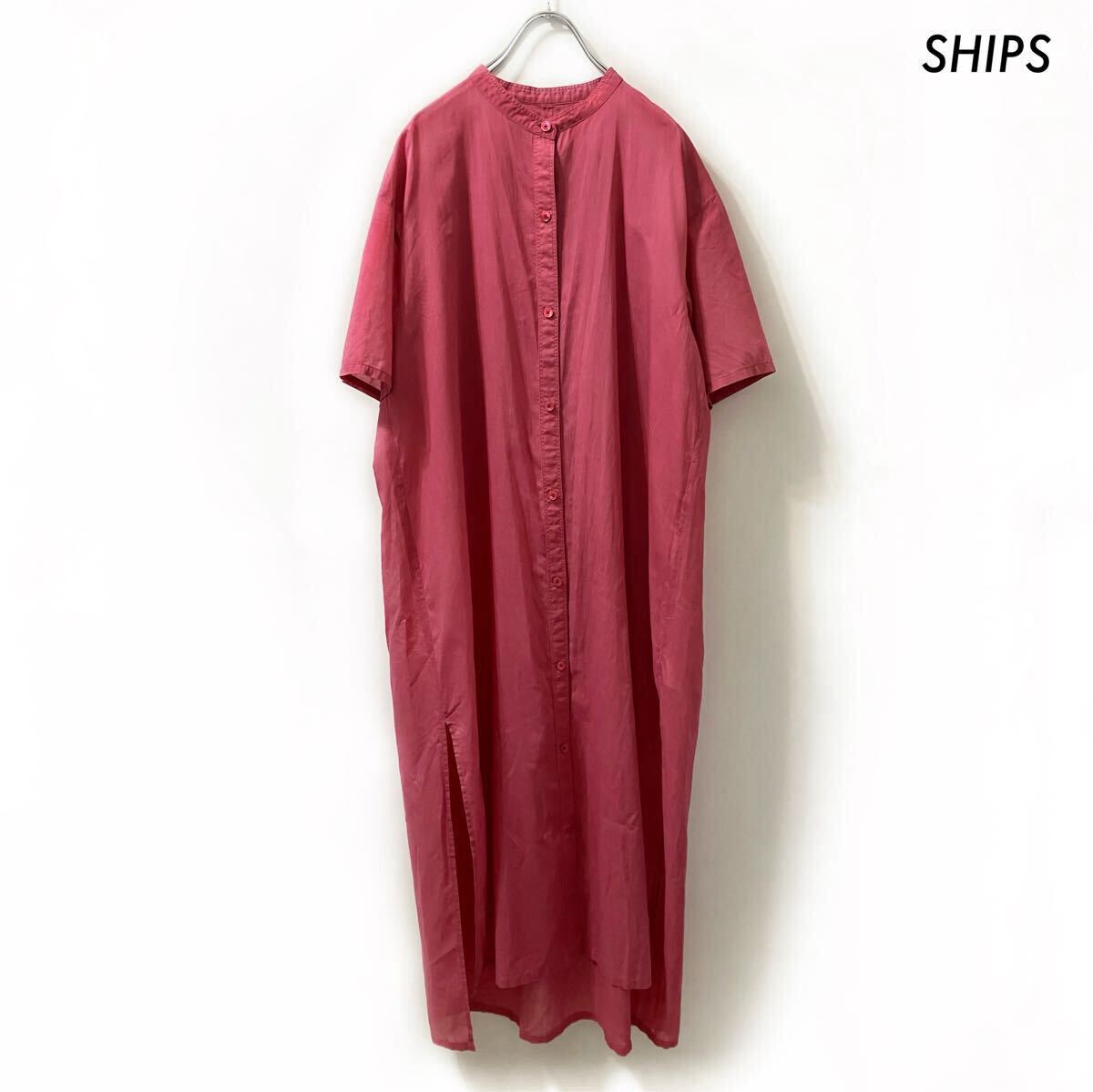 SHIPS シップス★半袖シャツワンピース バンドカラー ピンク