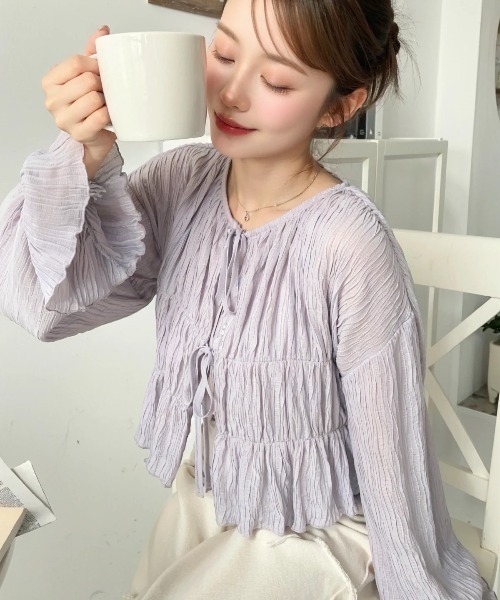 参考商品名:クリンクルシフォン前後2WAYリボンシャーリングショートカーディガン