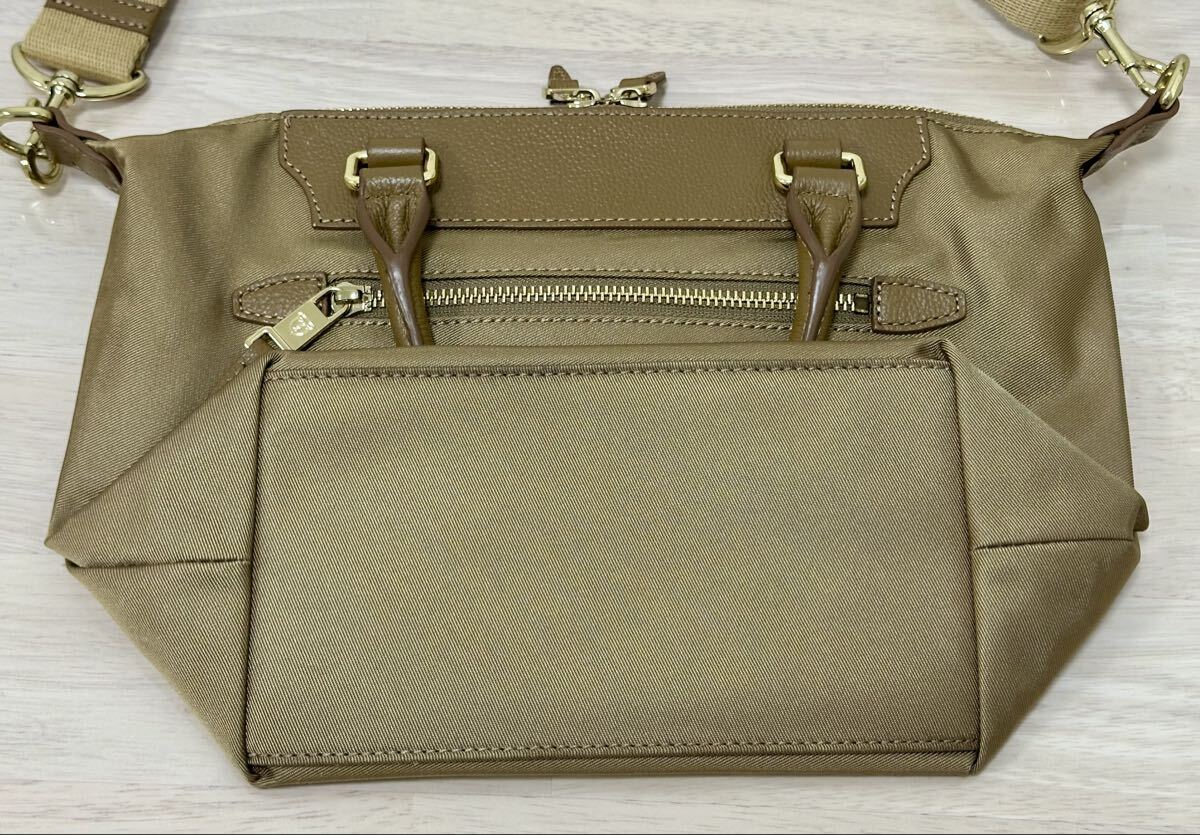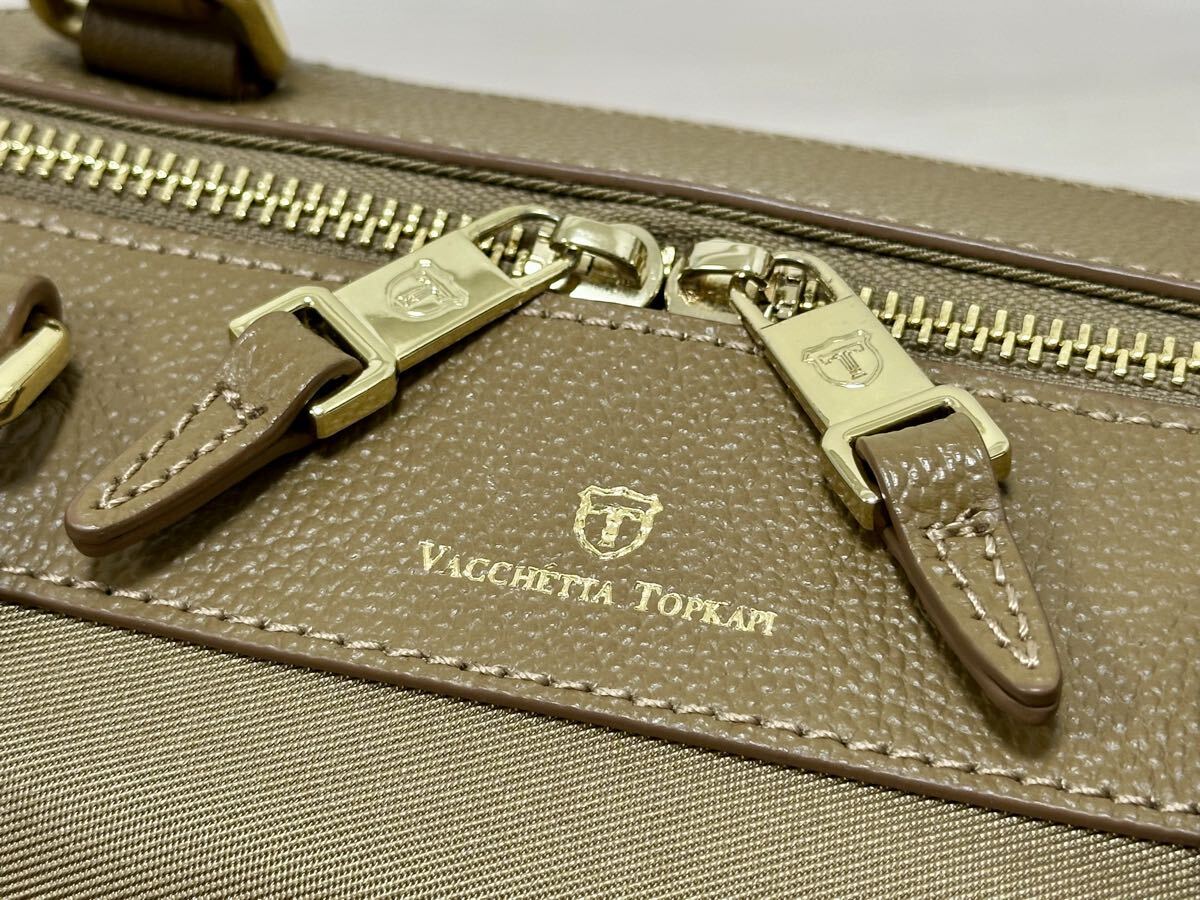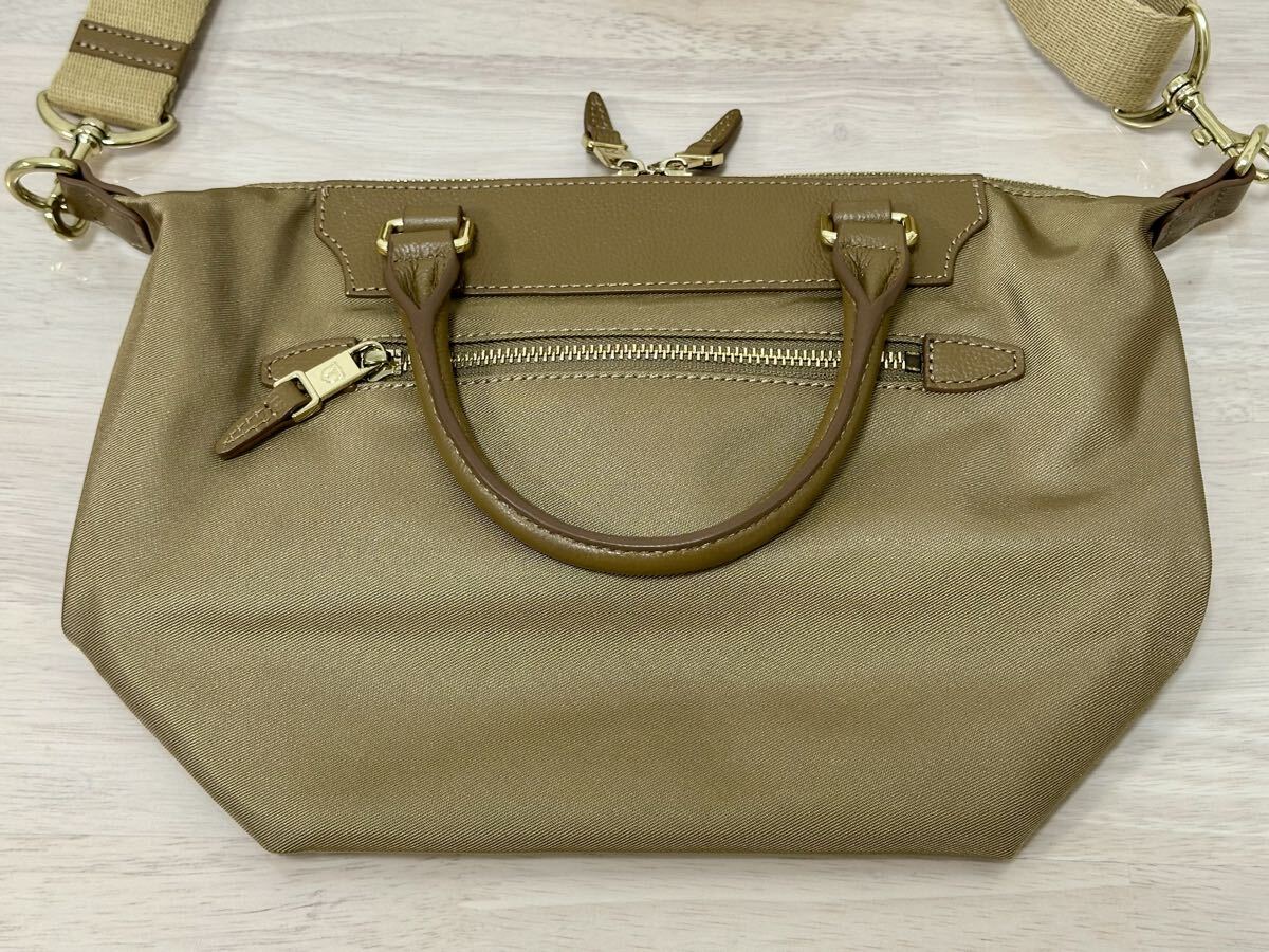 ...上品な艶のある柔らかなベージュブラウン×ゴールドの2ウェイバッグです
