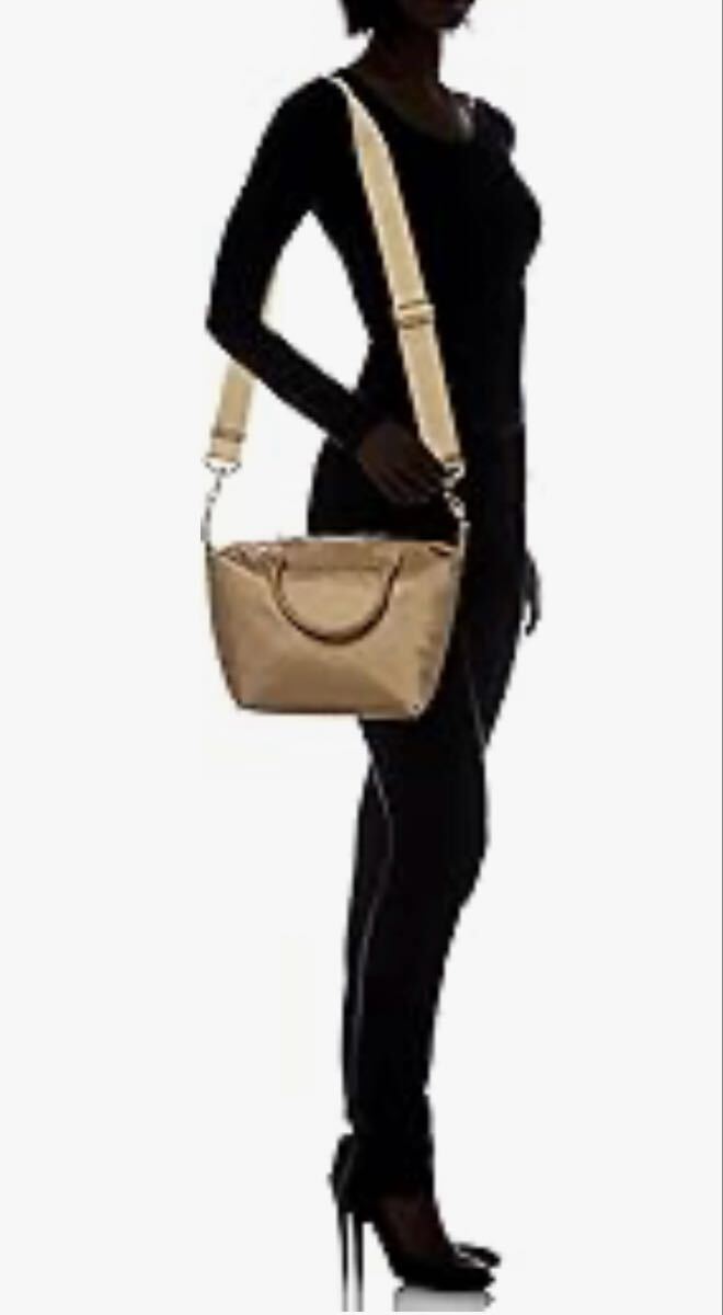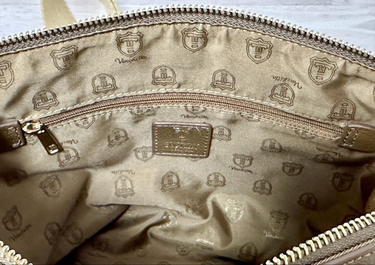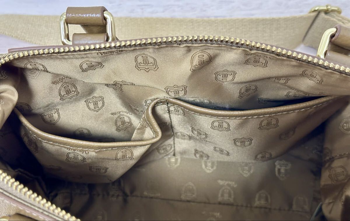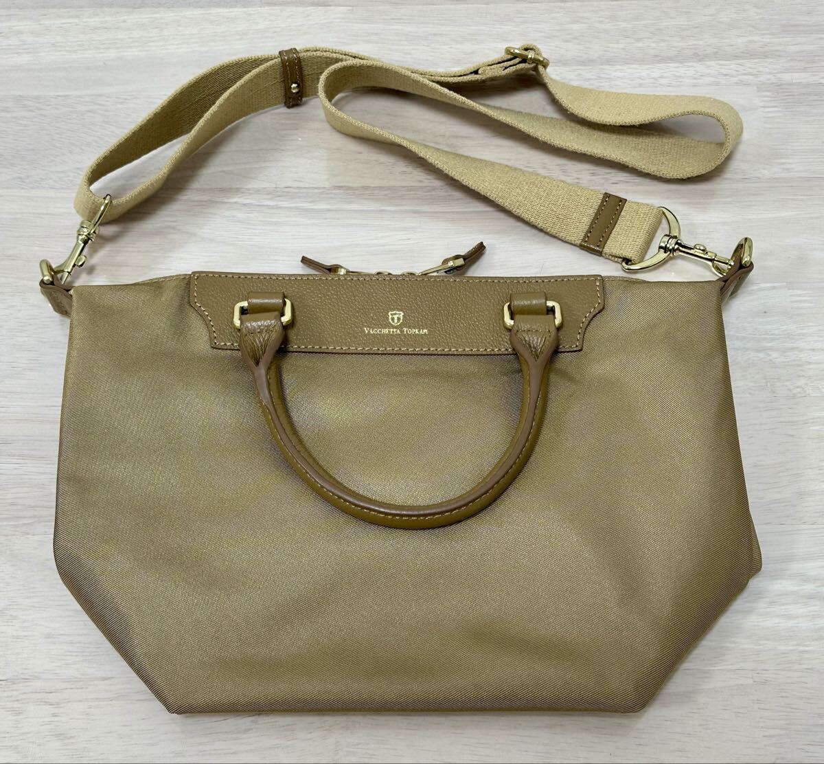 ...上品な艶のある柔らかなベージュブラウン×ゴールドの2ウェイバッグです