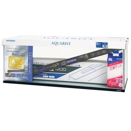 120cmガラス水槽と外部フィルター、LEDライト、専用ガラスフタのお買い得セットです。