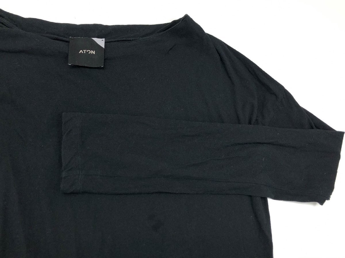 美品【エイトン ATON】 KK.AG.IM.0401 コットン100% クルーネック 長袖カットソー (レディース) size2 ブラック ◇35LT5478◇