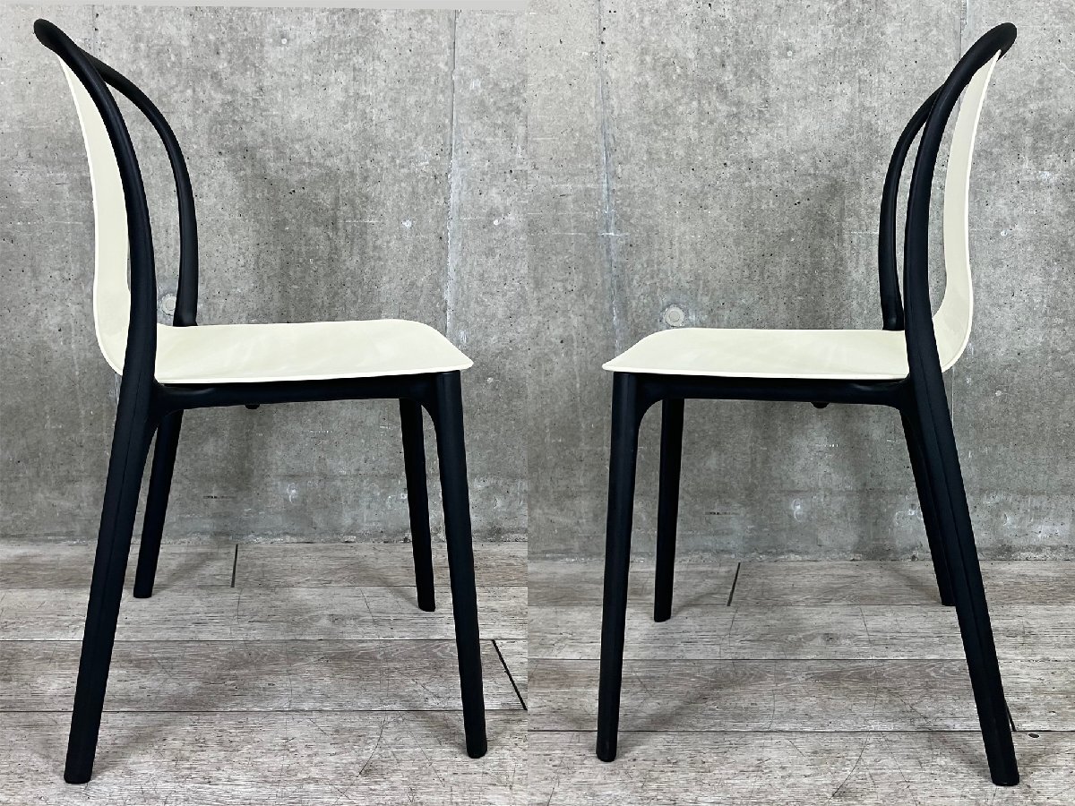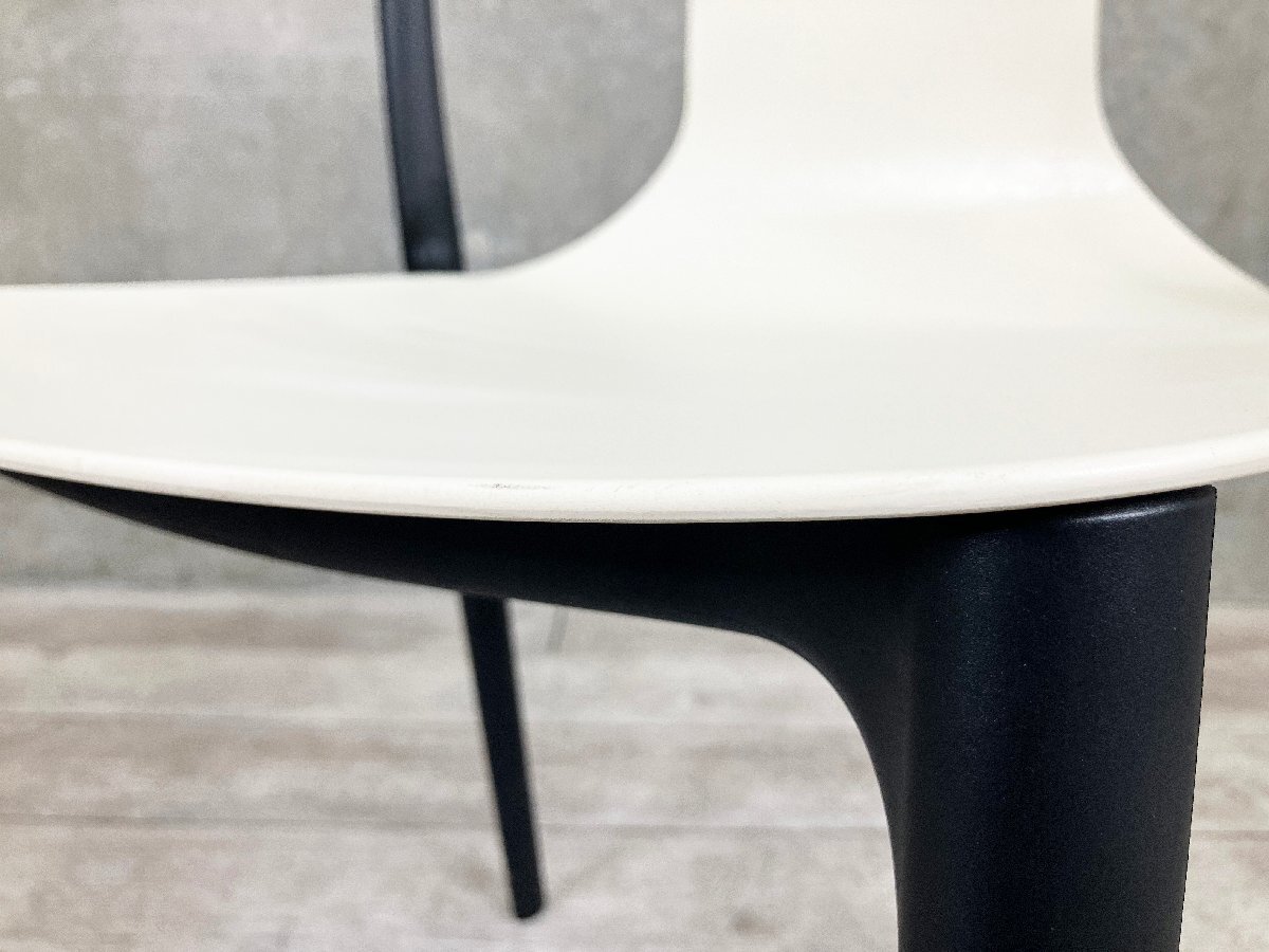 ■ヨーロッパを代表する家具メーカー『vitra』社から、ベルヴィルサイドチェアです この椅子の最大の特徴はシートシェルです。シートシェルは、ベルヴィルチェアのアイデンティティとなる部分であり、素材や色に応じてイメージが変化します。スレンダーな黒のフレームは、脚や背面に向かって書道の線を思わせるようなラインを描いています。一方シートシェルは、広めの座面が背もたれにかけて細くなっていき、非常に薄いシェルを支えています。 ¥57,200(税込み) ■色/クリーム ■サイズ/W550 x D500 x H830 SH470 ■状態/全体的に使用に伴う細かいすれ傷がございます。(写真参照) 雰囲気を損ねるダメージはなく、まだまだ気持ちよくお使い頂けます。 |