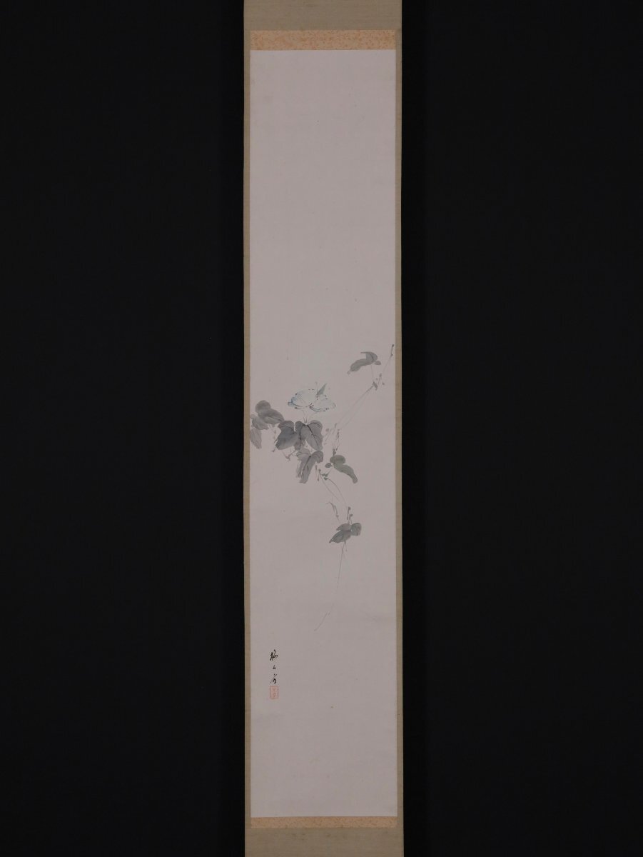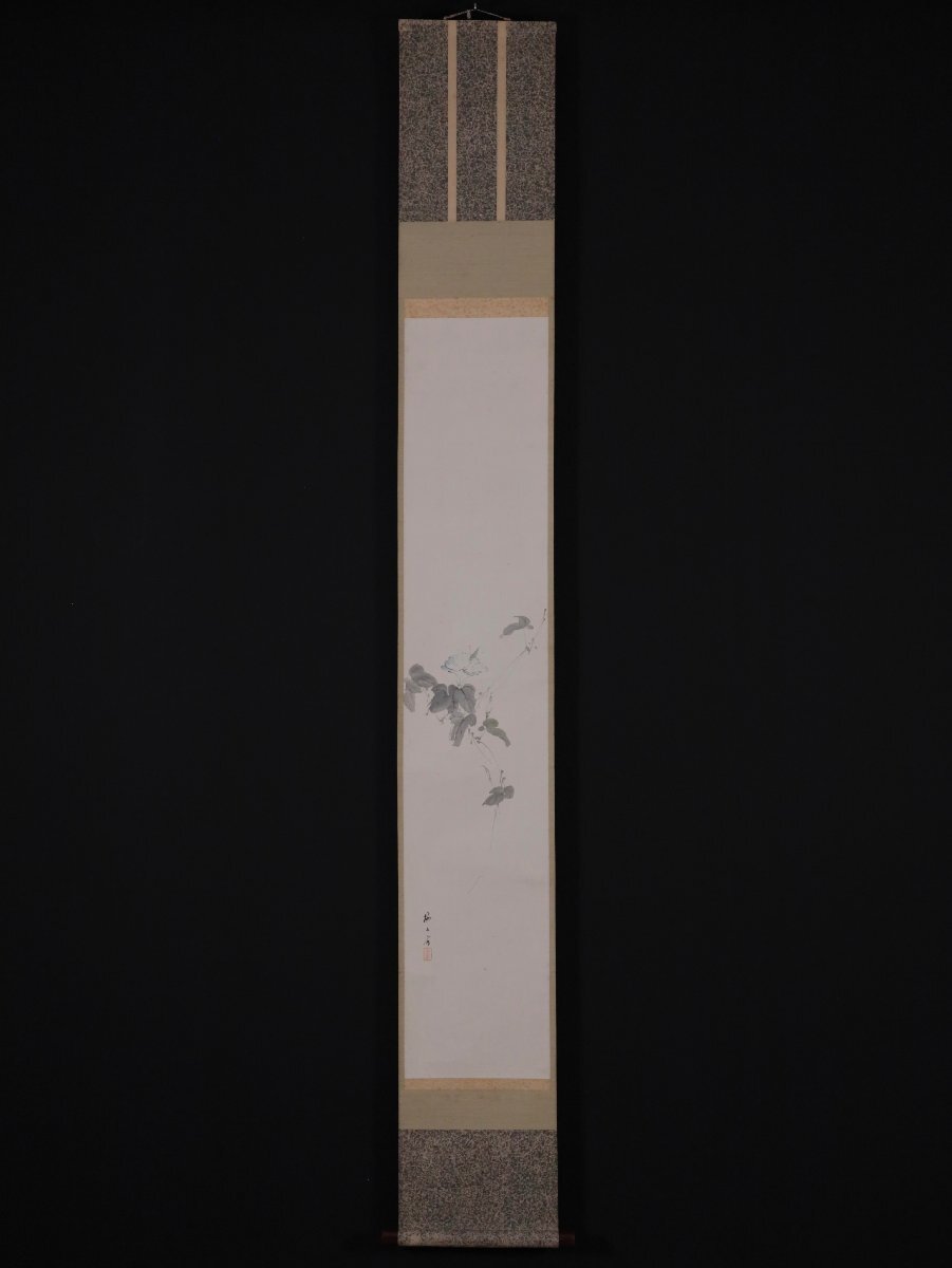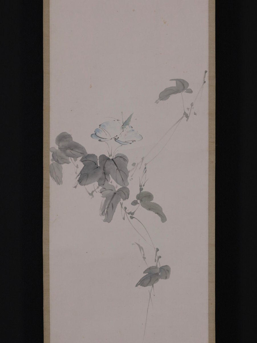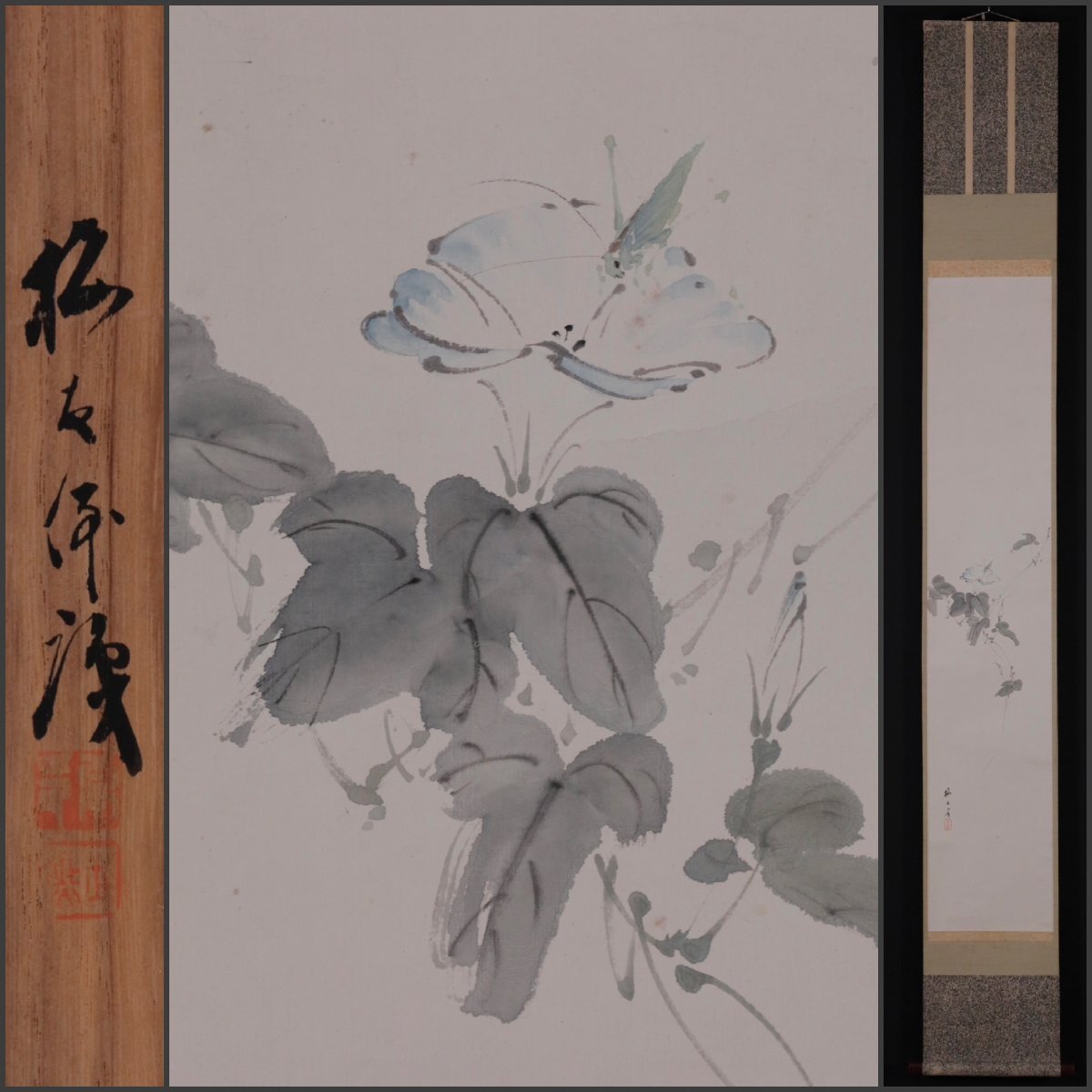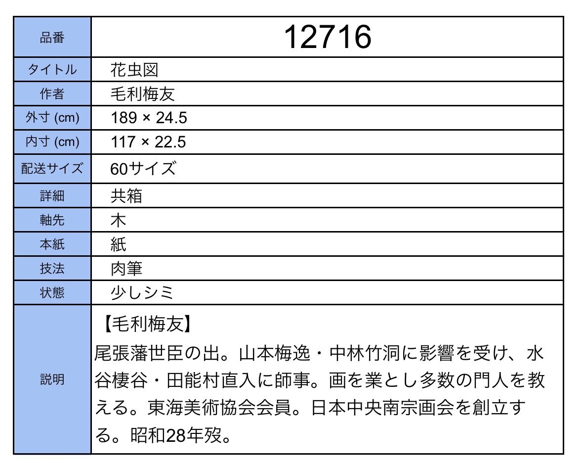 【模写】吉】12716 毛利梅友 花虫図 共箱 田能村直入師事 愛知県 尾張藩 中国画 茶掛け 茶道具 掛軸 掛け軸 骨董品