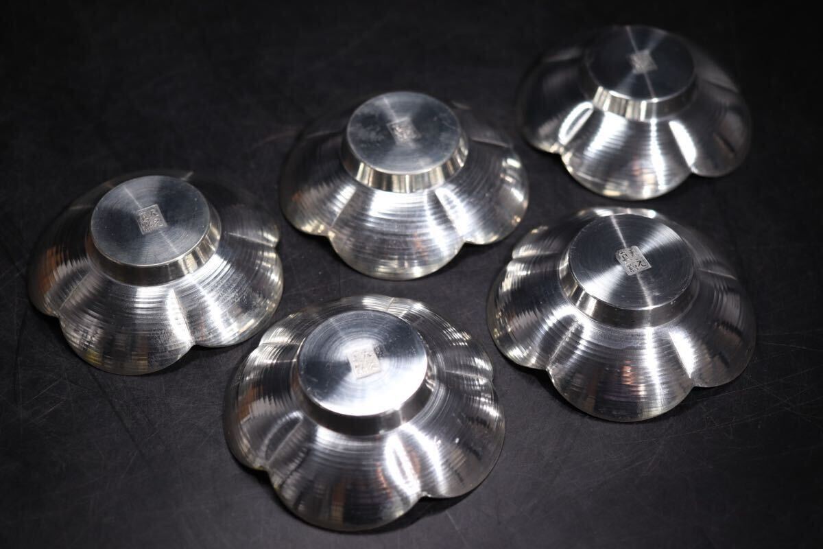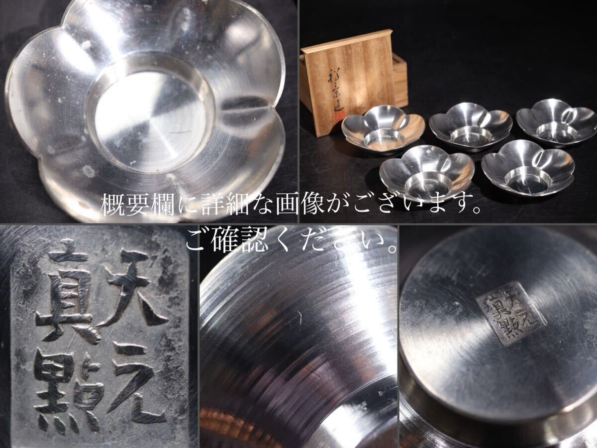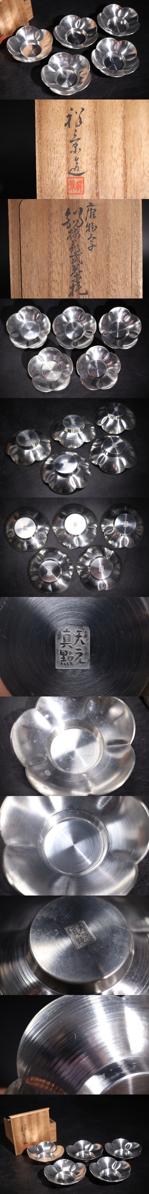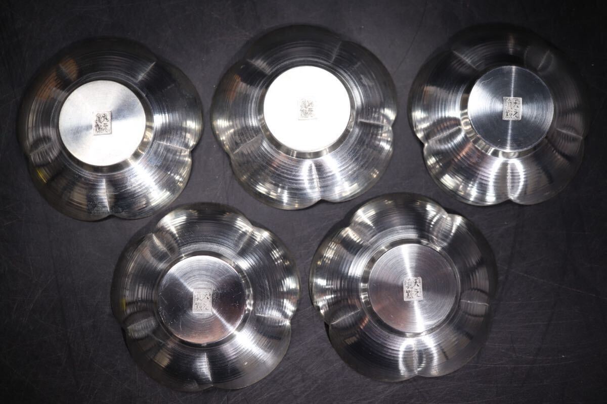 | 天之真點 底款 祥景 造 「 唐物写 錫製 花式 茶托 五客 」 共箱付 / 金工 彫金 急須盆 茶器 煎茶道具 .G2232 |