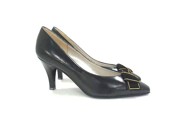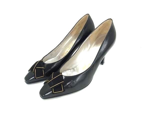 ■美品■ BRUNOMAGLI ブルーノマリ レザー パンプス ヒール 表記サイズ 35 1/2(約22.5cm) 靴 ジューズ レディース ブラック系 DI5957
