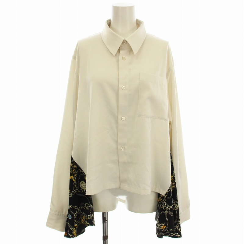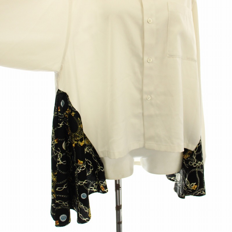 ロイスクレヨン Lois CRAYON シャツ ブラウス 長袖 切替 M 白 黒 /☆G レディース