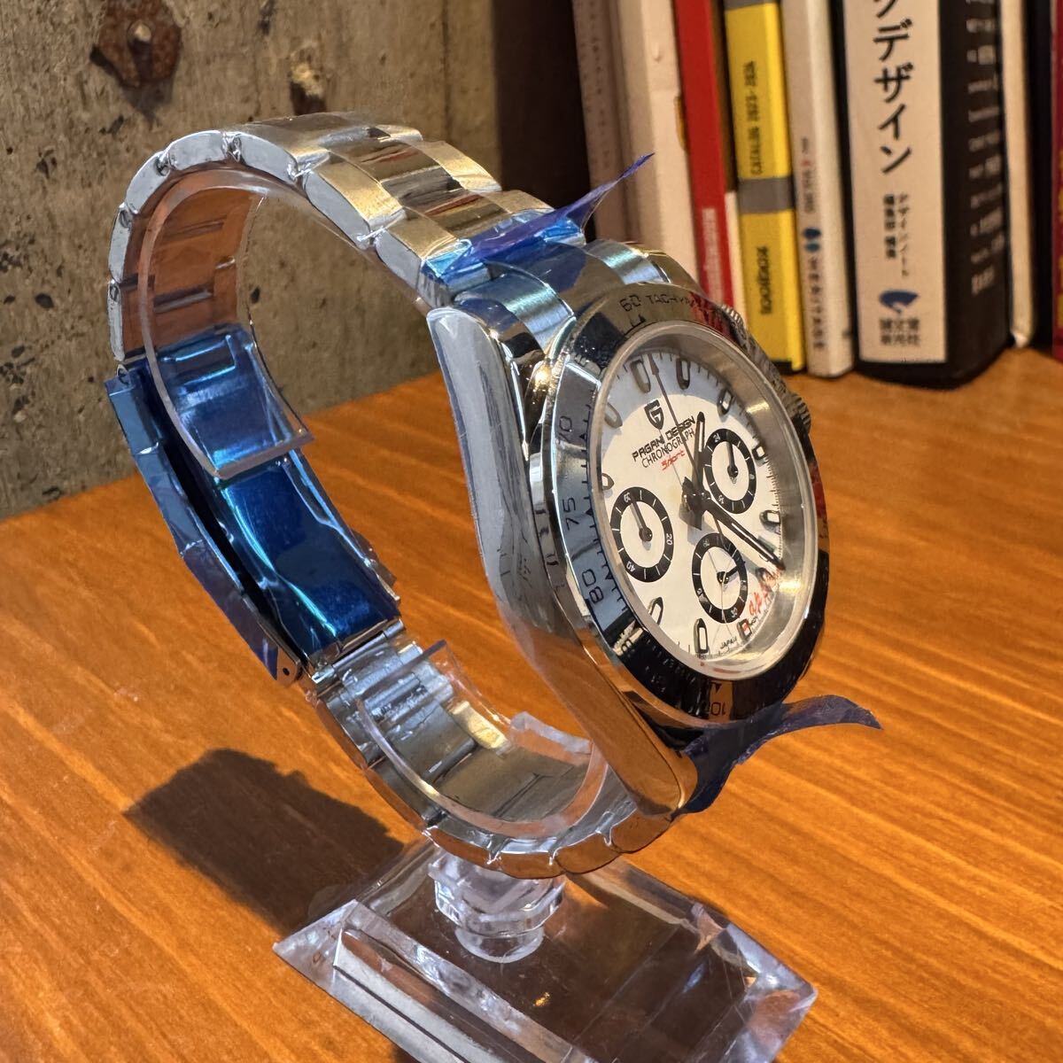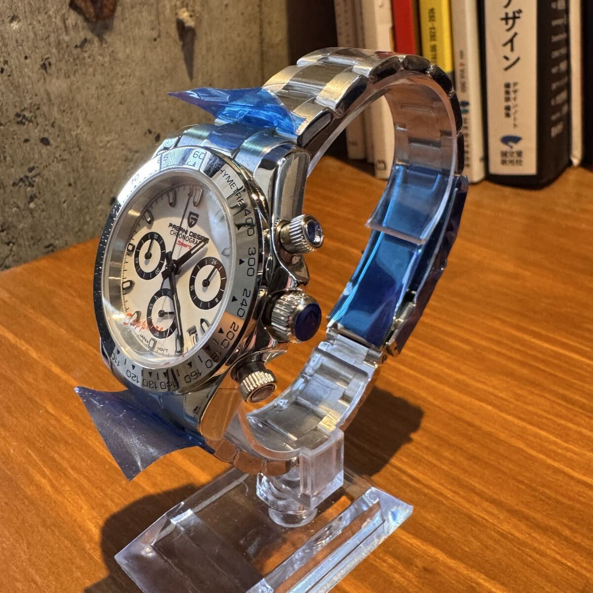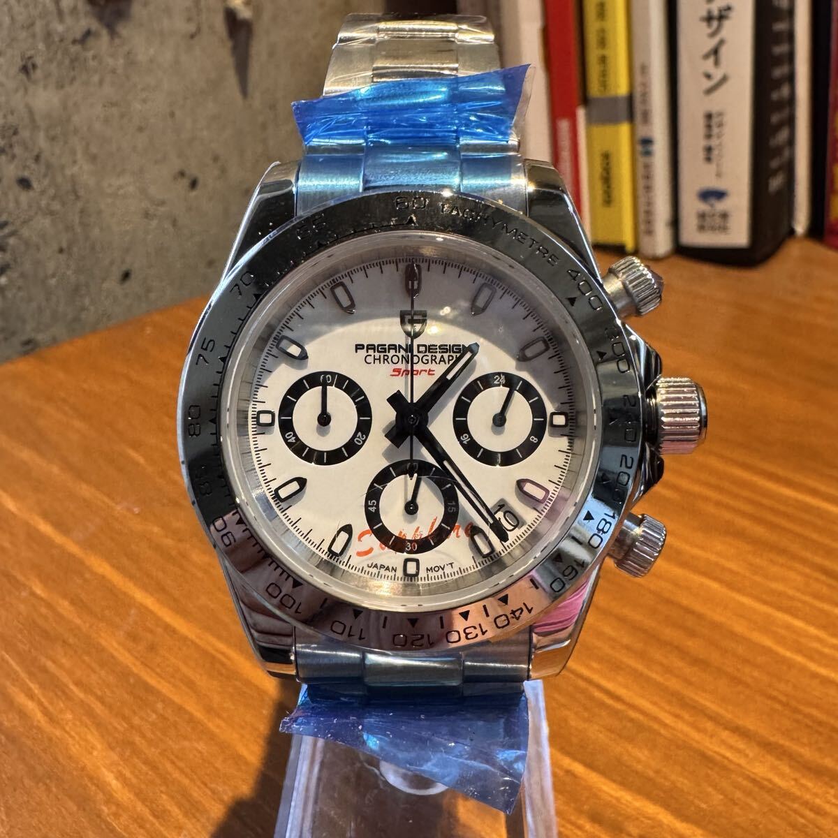 高品質なステンレス製ケースに、タキメーター付きのベゼルと3つのサブダイヤルを備えた本格スポーツデザイン。日本製ムーブメント「TMI VK63」を搭載し、クオーツながら機械式風のスイープ運針を実現。外観と性能のバランスに優れた、ハイコストパフォーマンスな一本です。