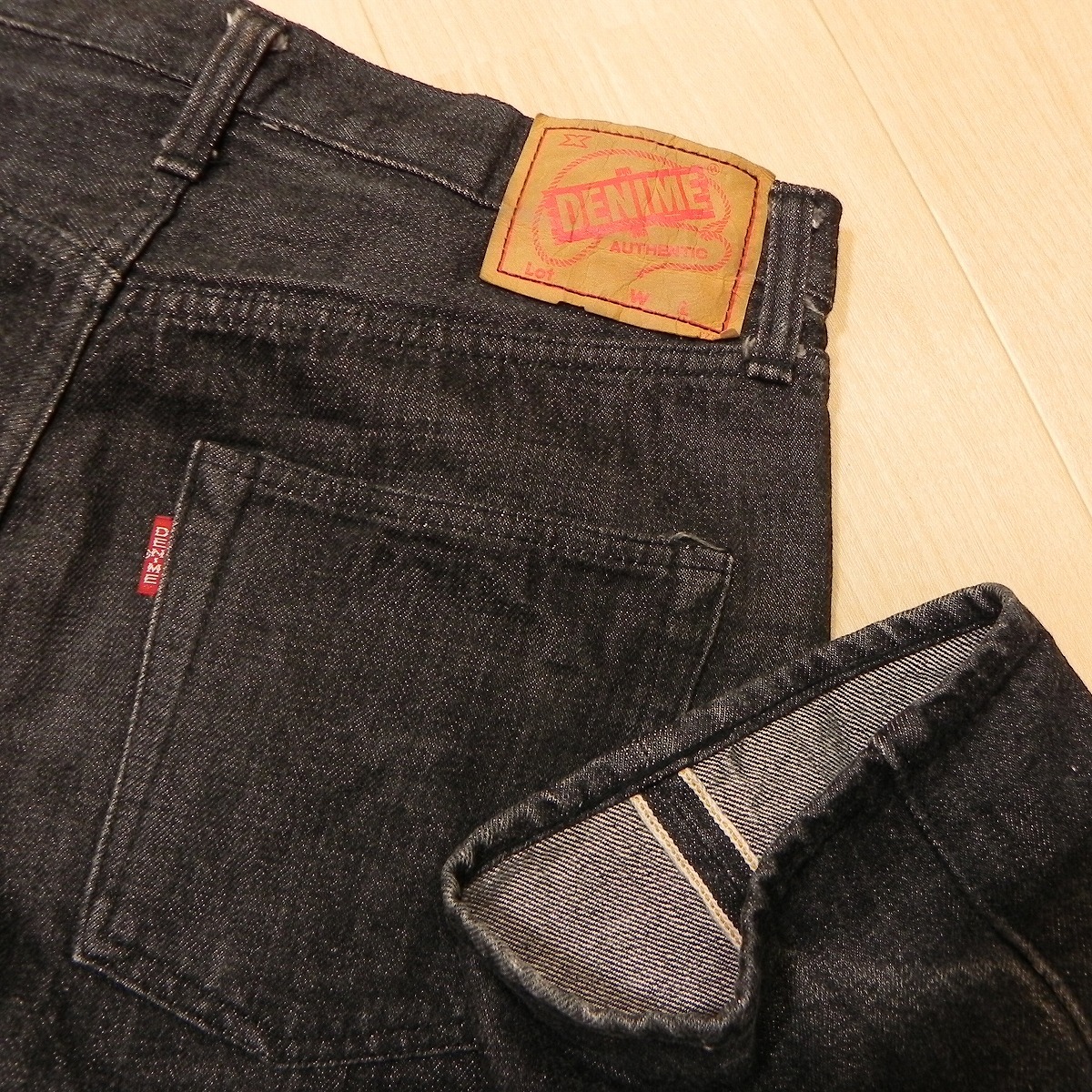 )651★ 日本製 DENIME 旧 ドゥニーム ORIZZONTI オリゾンティ セルビッチ 先染め ブラックジーンズ ブラックデニム W30 古着 ★