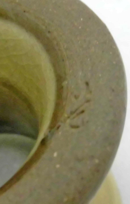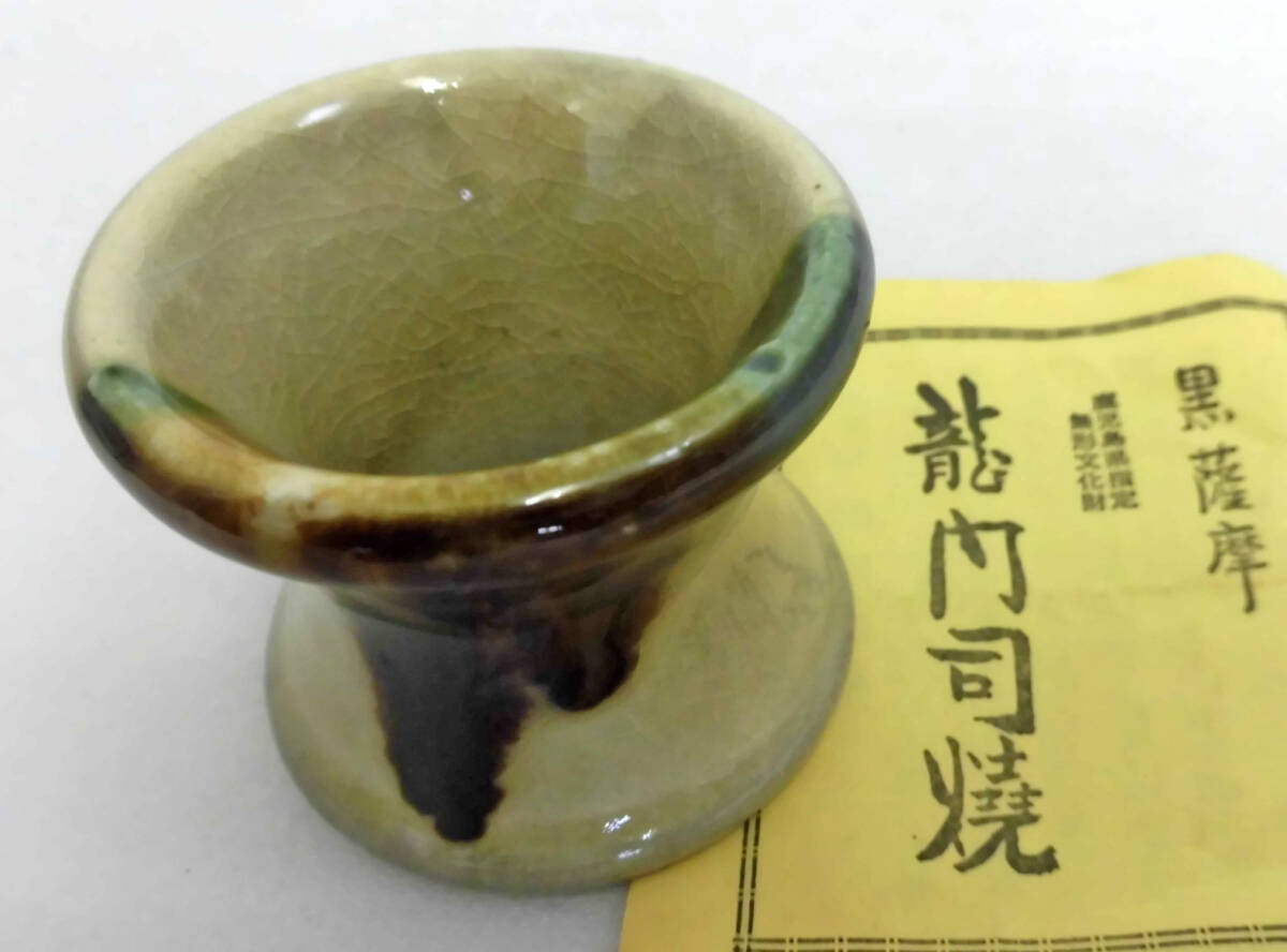 | 品名:龍門司焼(黒さつま) 三彩蓋置 茶道具 作家:老?花? 銘入 龍門司焼窯元 寸法:口≒5.6㎝ 丈≒4.6㎝ 状態:極美品です。 できるだけ説明いたしますが、写真でご判断ください。写真の色の誤差はご容赦ください 出品者の主観です:珍しい黒さつま・龍門司焼三彩釉薬の絶妙をお楽しみください。 | ||