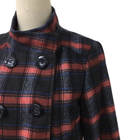アーノルドパーマー Arnold Palmer コート スタンドカラー ダブル チェック 長袖 1 赤 黒 レッド ブラック レディース