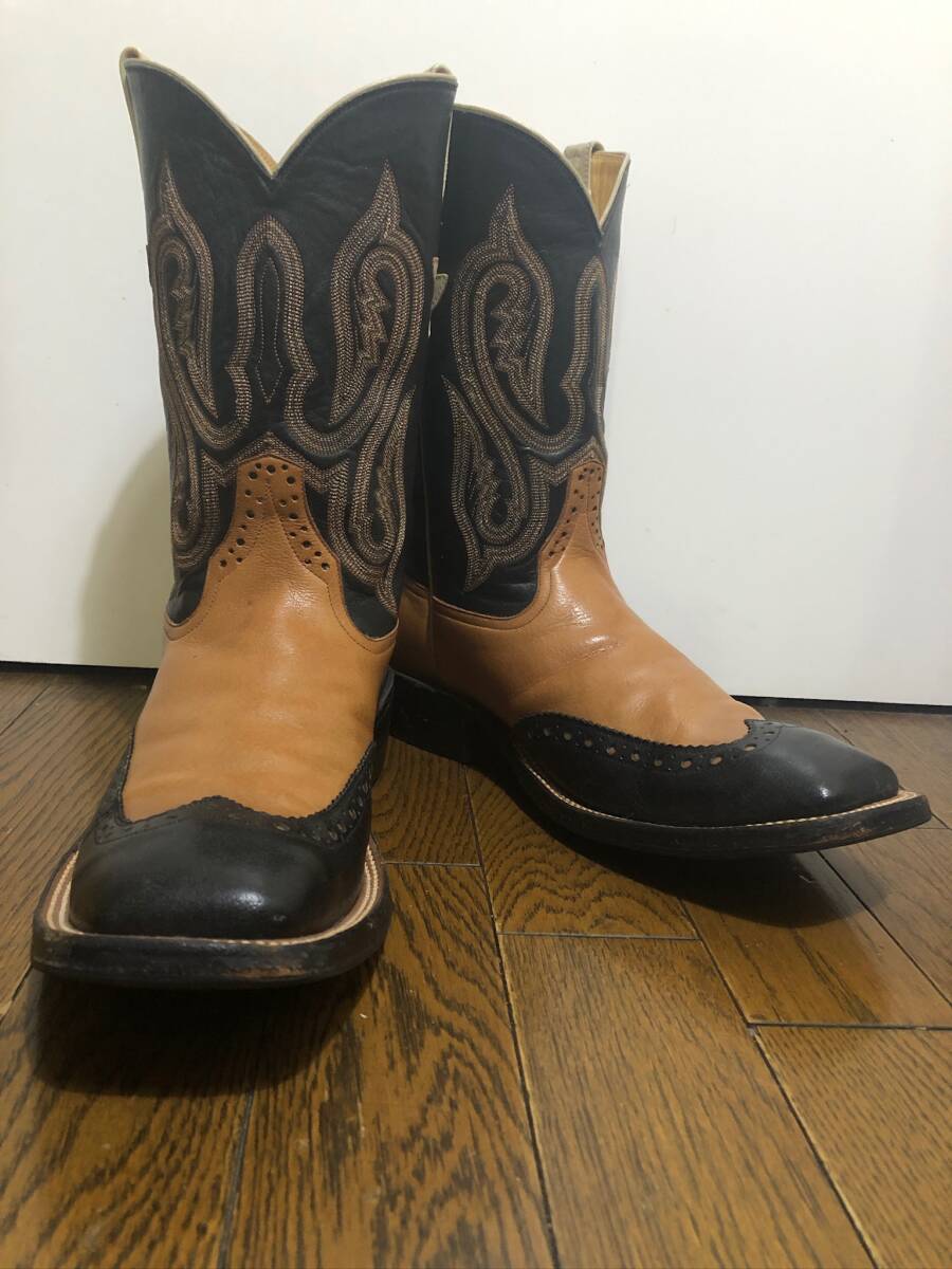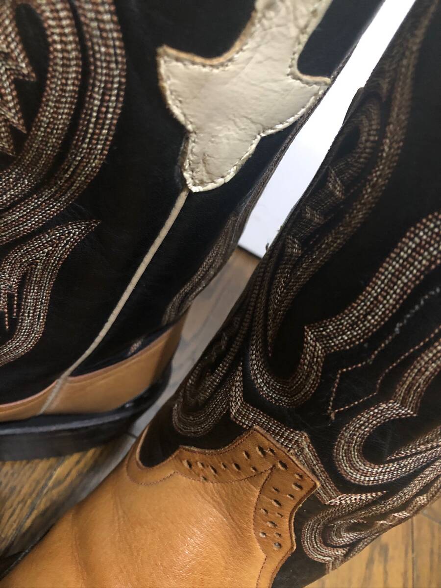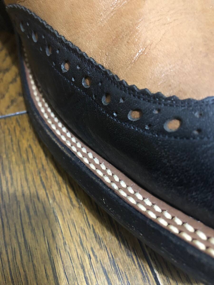 別注リオスオブメルセデス2トーンメダリオンブーツ。 サイズ10EE。希少サイズです。ブラック×ブラウン系。正規店購入の本物です。 あまり見かけない、メダリオンが入った、2トーンの大人のブーツです、サイズもなかなか出ないサイズですし、色もかっこいい配色なので人と違ったブーツを探している方におすすめです。アッパーはしわが入りやすいので、使用感やトゥ シャフトなどにはスレや汚れや傷はありまが、状態もまだまだこれからも履いて頂けるかと思います。あくまで個人の品で、汚れや傷やスレはあるかもしれません。コレクション整理のため出品させて頂きます 。リオスなので元から傷やスレやへこみなどあったり、糸飛びなどある場合があります。1度人の手に渡っています。基本ショップリサイクル紙袋で包装致します。大変申し訳ないのですが状態に関しては個人差があります。新品では無いusedブーツですので汚れはあるかと思います。個人差にご理解のない方、 臭いなど気になる方、インソールなどの汚れや傷が気になる方、傷などをご自分での判断で思い込みをしている方、ソール汚れやミッドソールなどの浮きが気になる方、包装の丁寧さや拘りのある方、細かい事が気になる方、神経質な方また、取引を急がせる方、見落とした傷汚れなどに敏感な方はご遠慮ください。評価の悪い方はこちらで入札を取り消す場合がございます。24時間以内にお返事が頂ける方、3日以内に迅速にお振込が出来る方ご入札お願い致します。あくまでも自宅保管です。以上ご理解の上ご入札お願い致します。ノークレーム、ノーリターンでお願いいたします。
