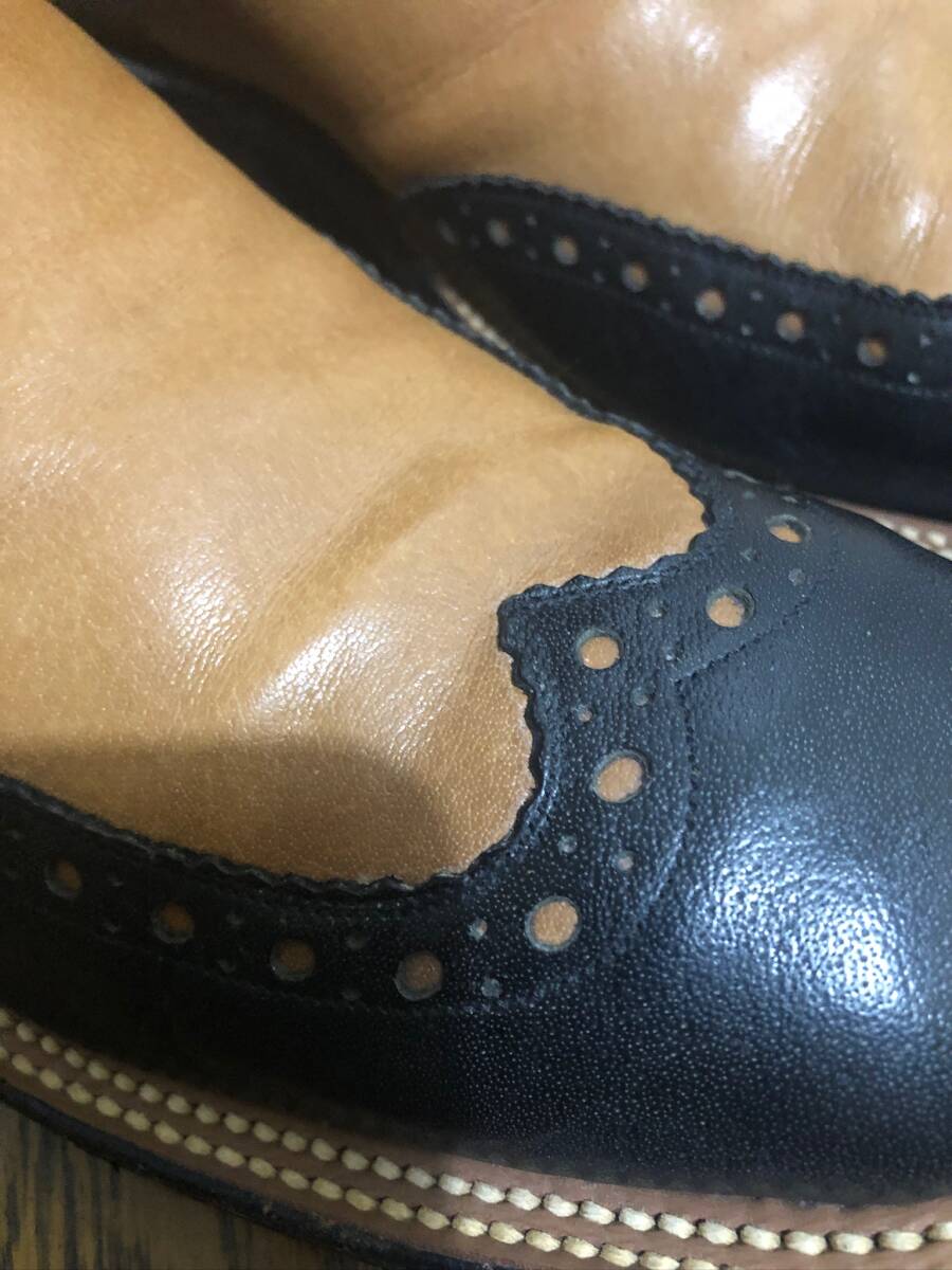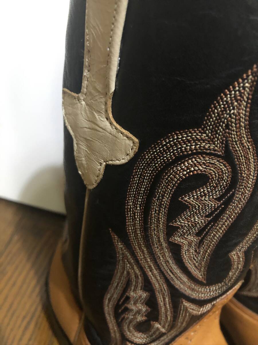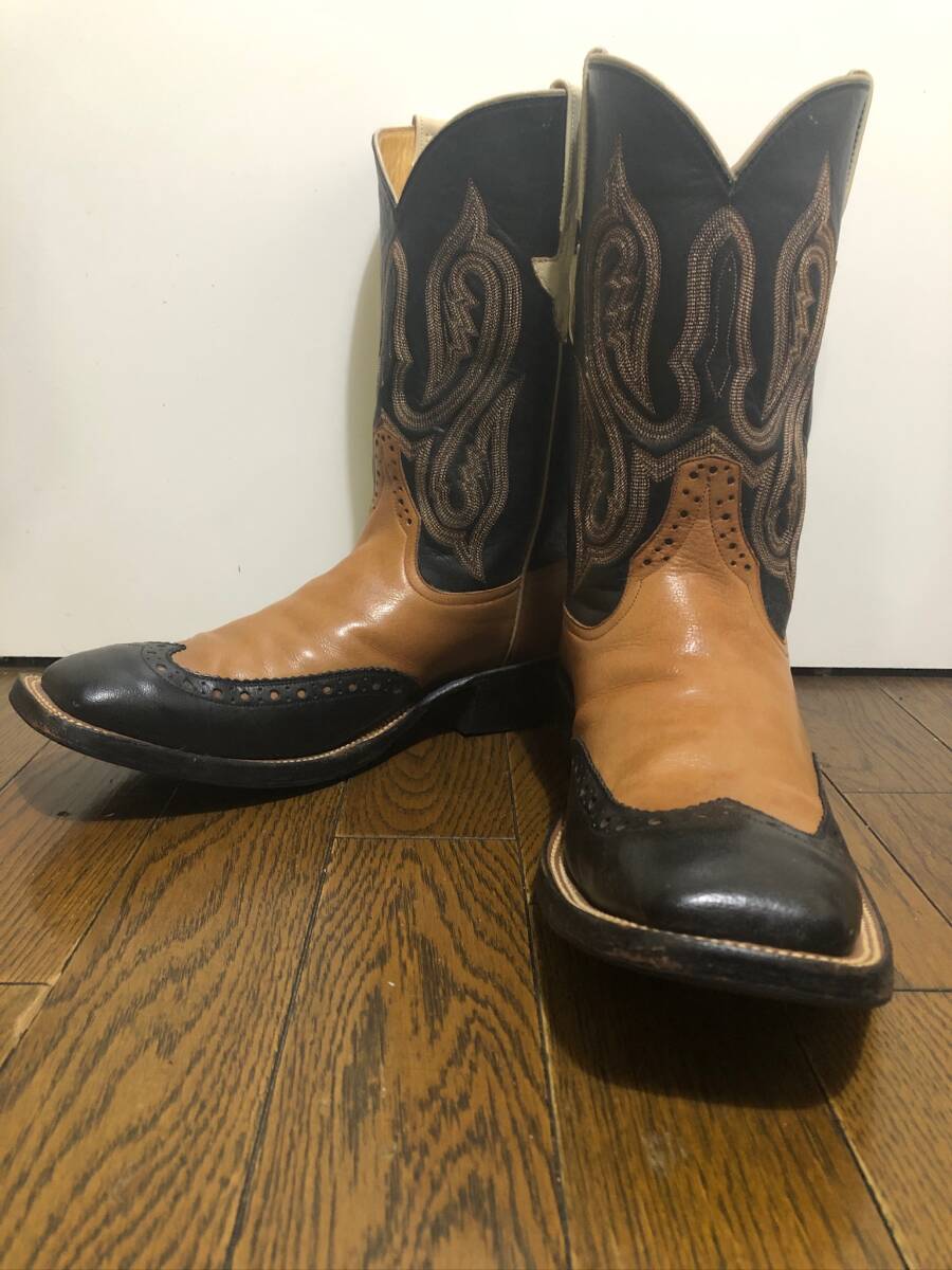 別注リオスオブメルセデス2トーンメダリオンブーツ。 サイズ10EE。希少サイズです。ブラック×ブラウン系。正規店購入の本物です。 あまり見かけない、メダリオンが入った、2トーンの大人のブーツです、サイズもなかなか出ないサイズですし、色もかっこいい配色なので人と違ったブーツを探している方におすすめです。アッパーはしわが入りやすいので、使用感やトゥ シャフトなどにはスレや汚れや傷はありまが、状態もまだまだこれからも履いて頂けるかと思います。あくまで個人の品で、汚れや傷やスレはあるかもしれません。コレクション整理のため出品させて頂きます 。リオスなので元から傷やスレやへこみなどあったり、糸飛びなどある場合があります。1度人の手に渡っています。基本ショップリサイクル紙袋で包装致します。大変申し訳ないのですが状態に関しては個人差があります。新品では無いusedブーツですので汚れはあるかと思います。個人差にご理解のない方、 臭いなど気になる方、インソールなどの汚れや傷が気になる方、傷などをご自分での判断で思い込みをしている方、ソール汚れやミッドソールなどの浮きが気になる方、包装の丁寧さや拘りのある方、細かい事が気になる方、神経質な方また、取引を急がせる方、見落とした傷汚れなどに敏感な方はご遠慮ください。評価の悪い方はこちらで入札を取り消す場合がございます。24時間以内にお返事が頂ける方、3日以内に迅速にお振込が出来る方ご入札お願い致します。あくまでも自宅保管です。以上ご理解の上ご入札お願い致します。ノークレーム、ノーリターンでお願いいたします。