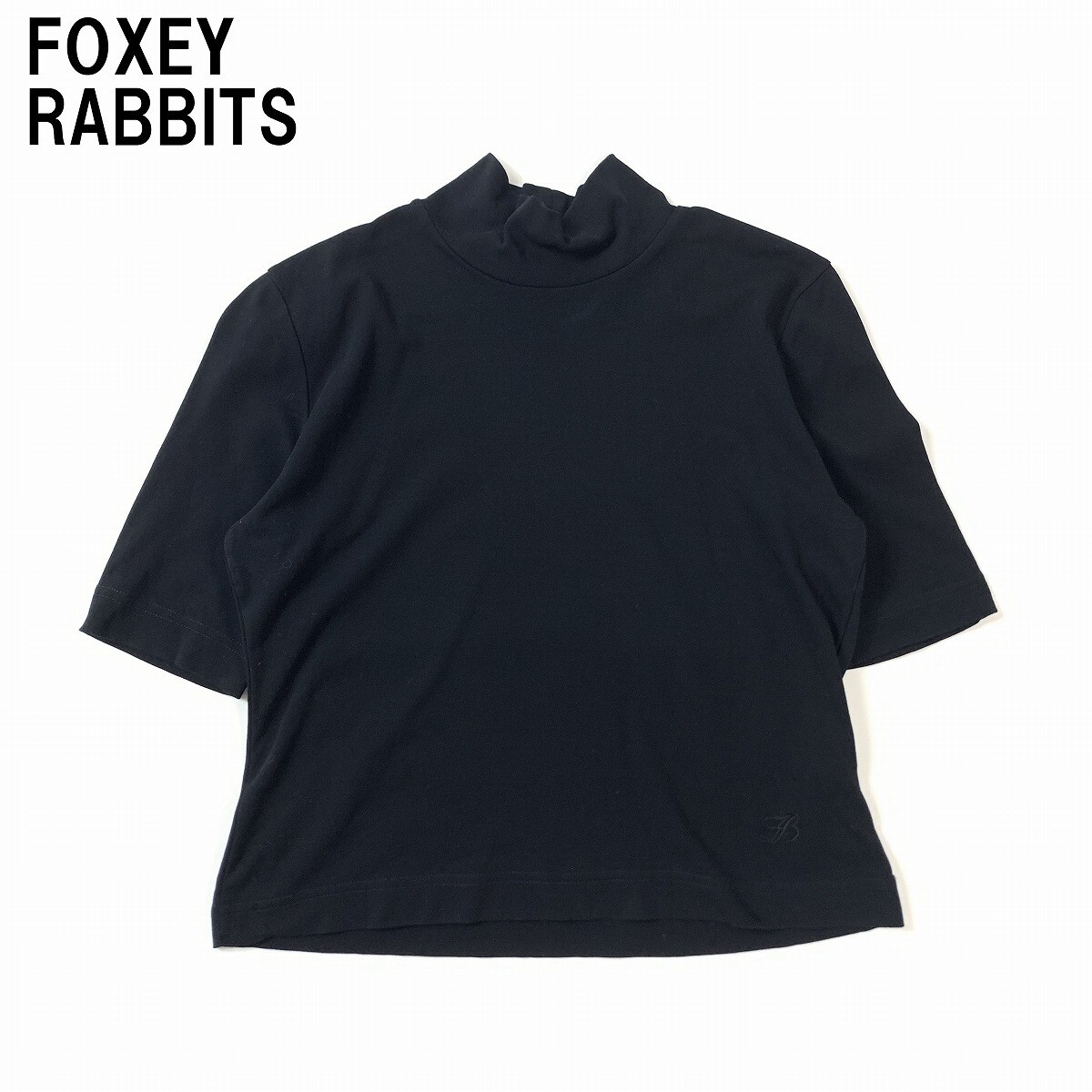 FOXEY RABBITS フォクシーラビット 半袖トップス Tシャツ 綿 コットン ハイネック ストレッチ 黒 ブラック 40 YC866