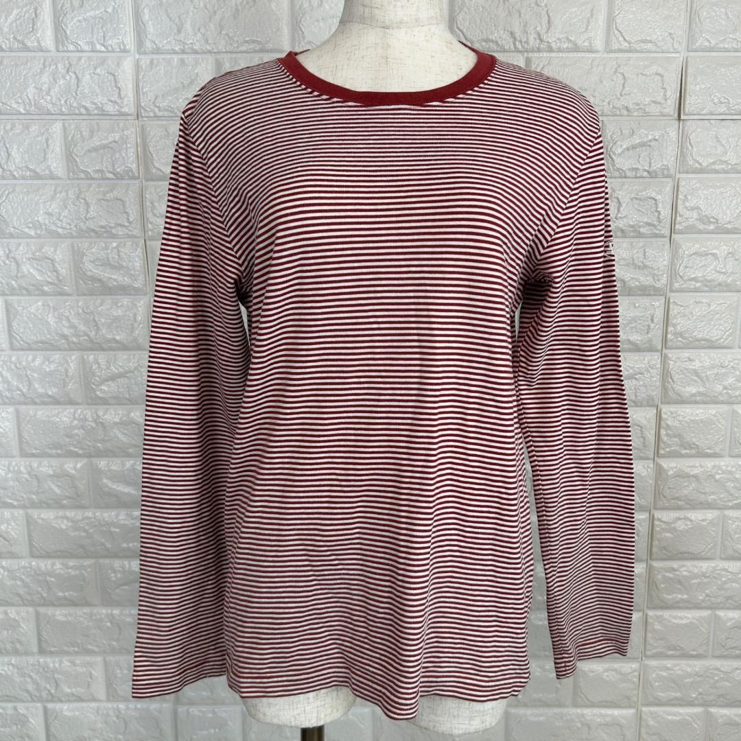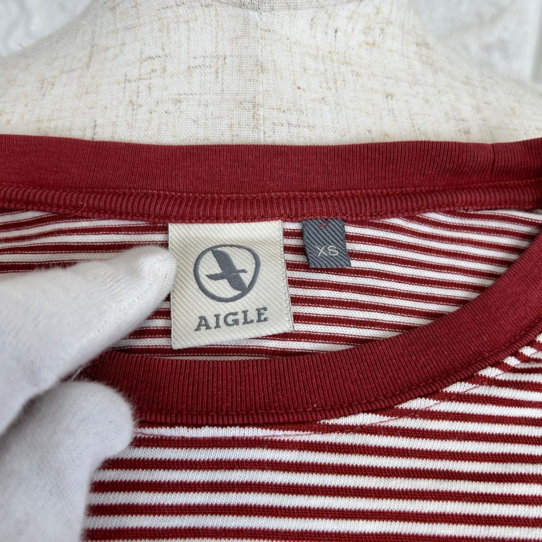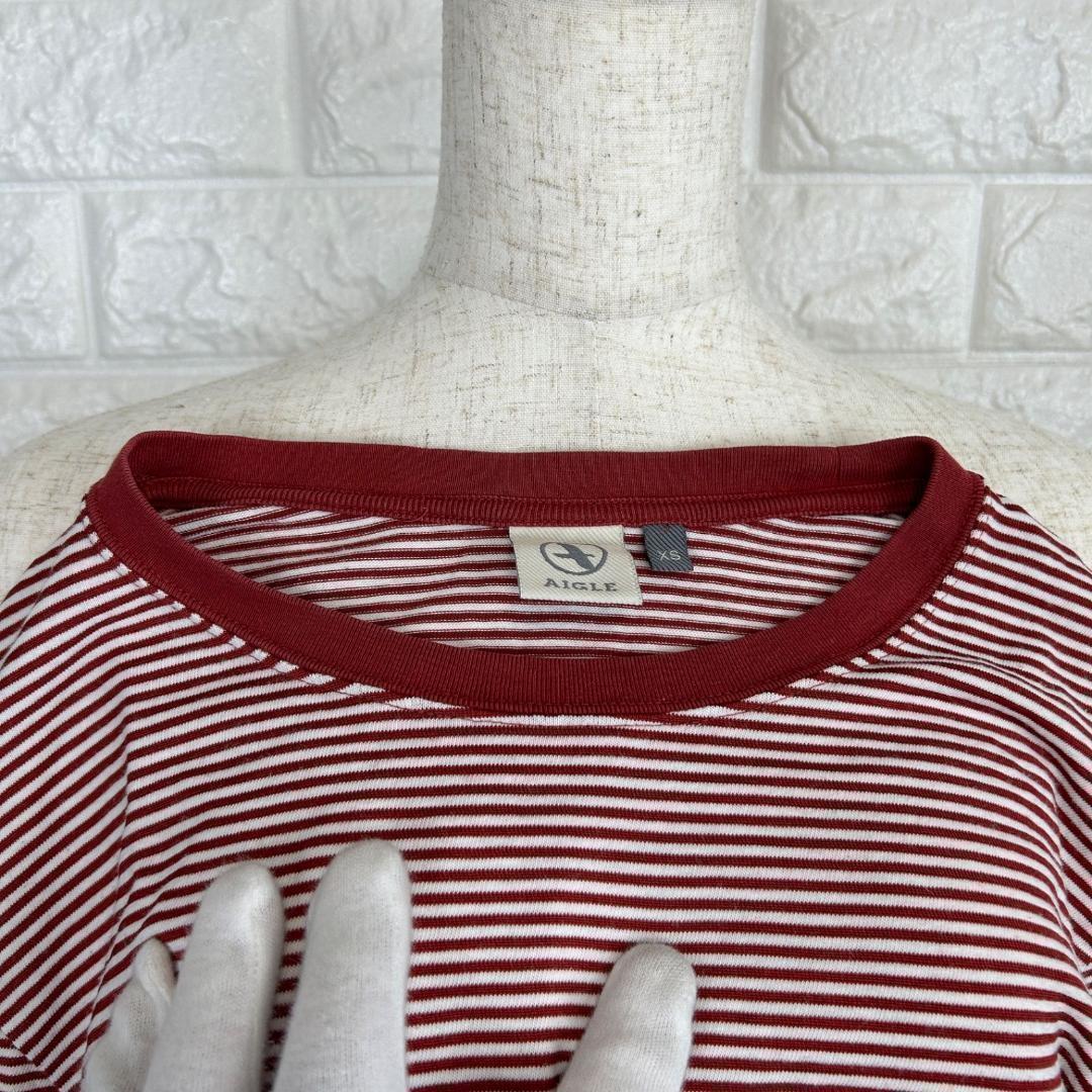 【A1506】 AIGLE エーグル XS ボーダー ロングTシャツ レッド レディース ロングスリーブ ロンT クルーネック 赤×白 メンズライク