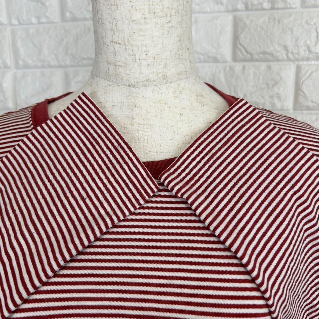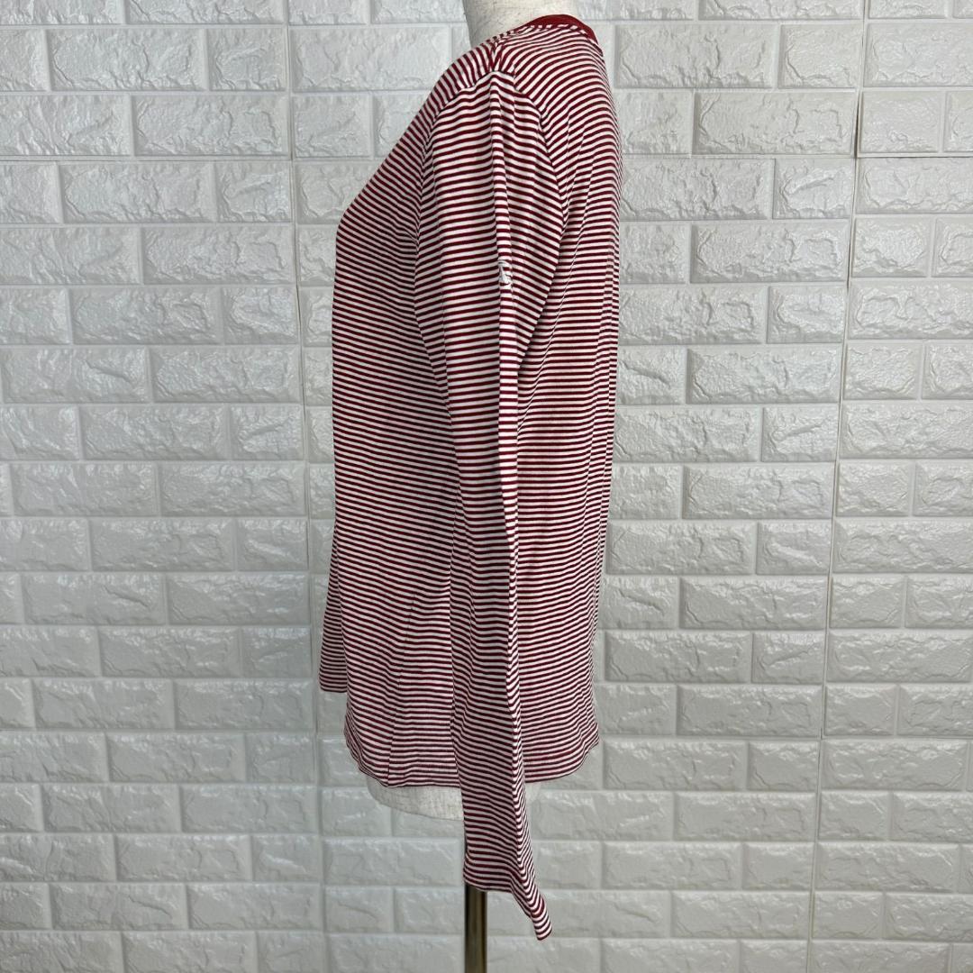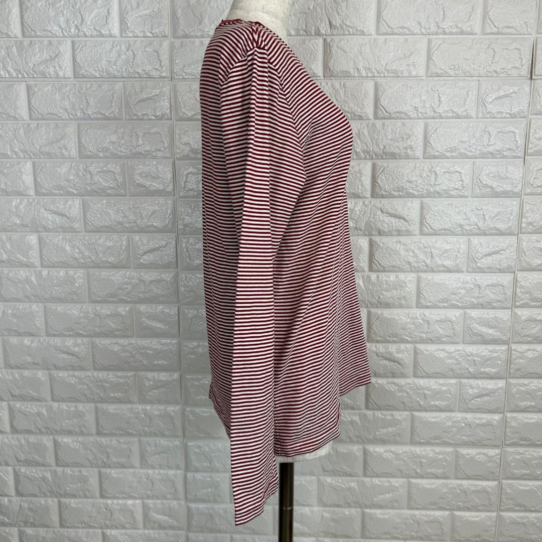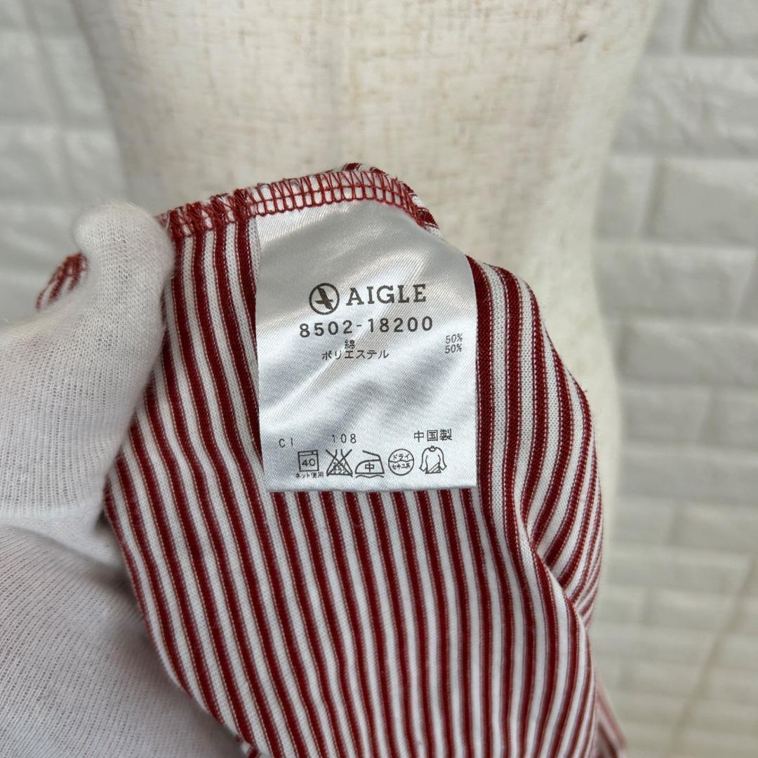 【A1506】 AIGLE エーグル XS ボーダー ロングTシャツ レッド レディース ロングスリーブ ロンT クルーネック 赤×白 メンズライク