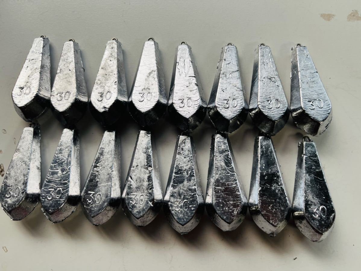 手作り六角型オモリ30号16個入1個110g総重量1760g発送はおてがるゆうパケットポスト投函になります。発送は木曜日以外の出荷になります。