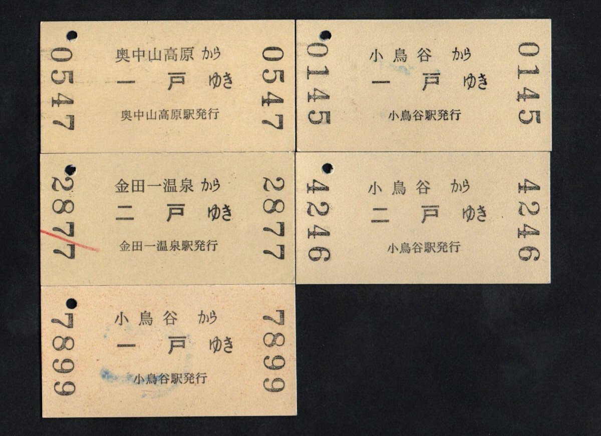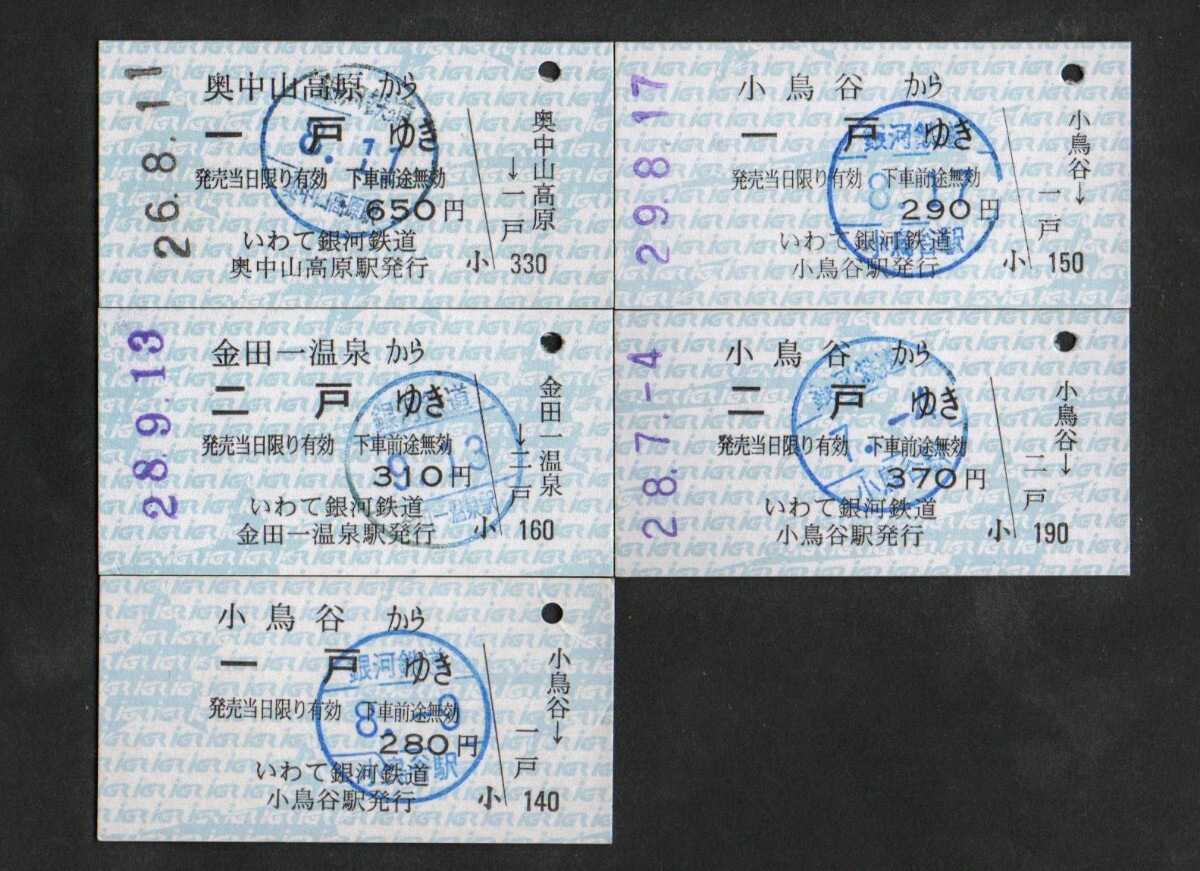 ◯IGRいわて銀河鉄道のA型硬券乗車券5枚セットです。