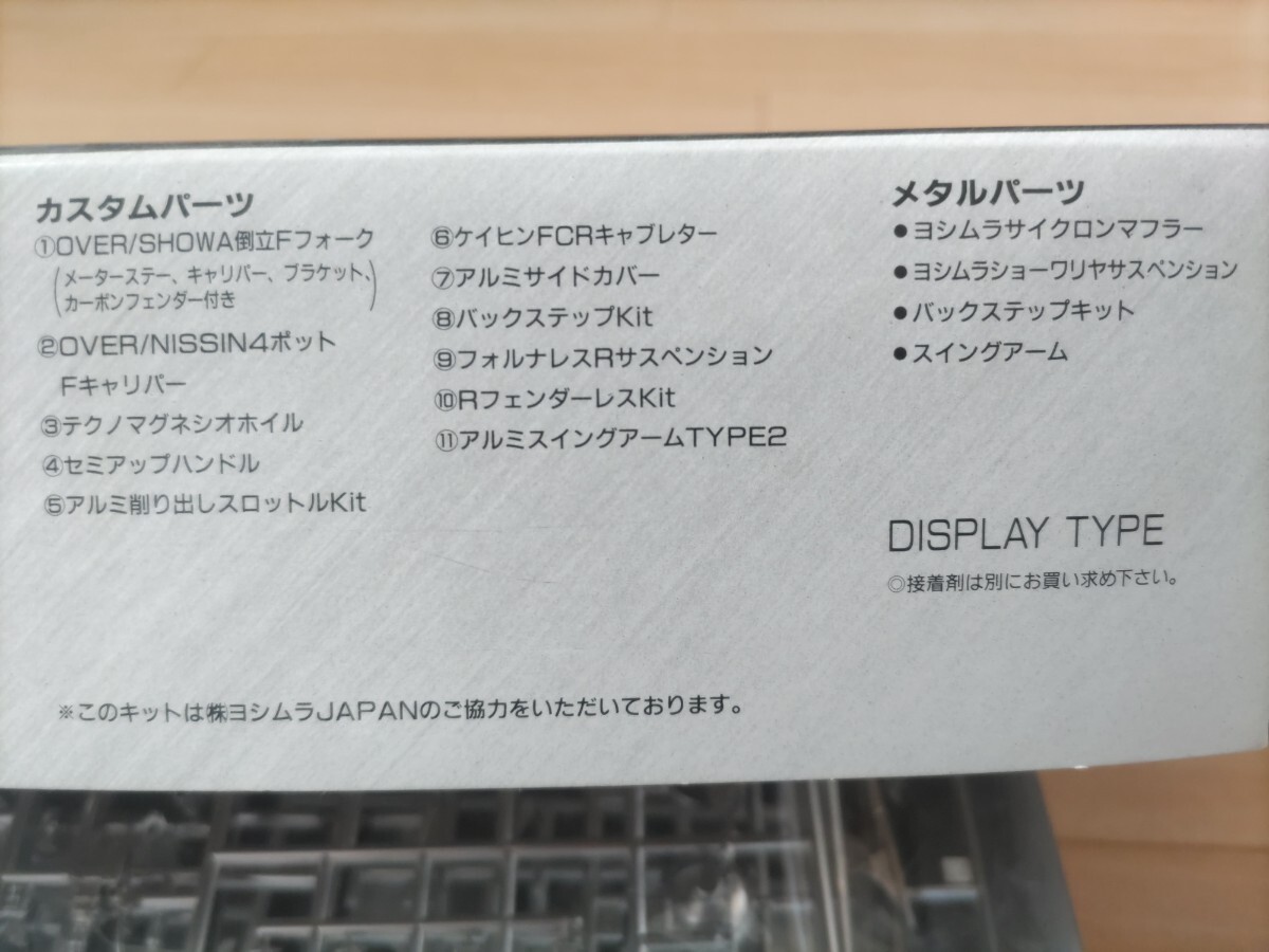 こちらのキットはヨシムラの協力により実現した高品質きっとです。マフラーやサスペンション、スイングアーム等を金属パーツで再現しています。