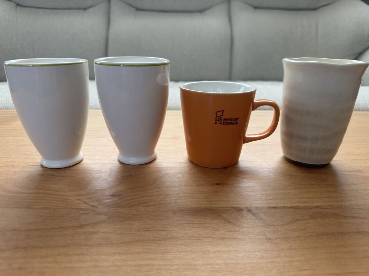 【入札される方へ】 トラブル防止とスムーズなお取引きのために、入札された方は商品説明や注意事項など、各事項をきちんと読まれて、理解・了承されたものと解釈させていただきます。 ご不明な点等ありましたら、お気軽にお問い合わせください。 商品の内容は写真を参考にしてください。 ミスタードーナツのノベルティカップ、コップ4点セットです。 サイズ 直径約7.5cm、高さ約11cm(写真3枚目) 直径約8cm、高さ約8.5cm(写真1枚目オレンジのマグカップ) 直径約8cm、高さ約11cm(写真7枚目) 長期自宅保管品につき、経年劣化や使用に伴う汚れなどが見られます。 写真7枚目のコップに若干の縁欠けが見られます(写真参照) いずれも、特に目立った傷みや汚れはなく、使用には特に問題ないかと思います。 商品の状態は写真でご確認ください。 |