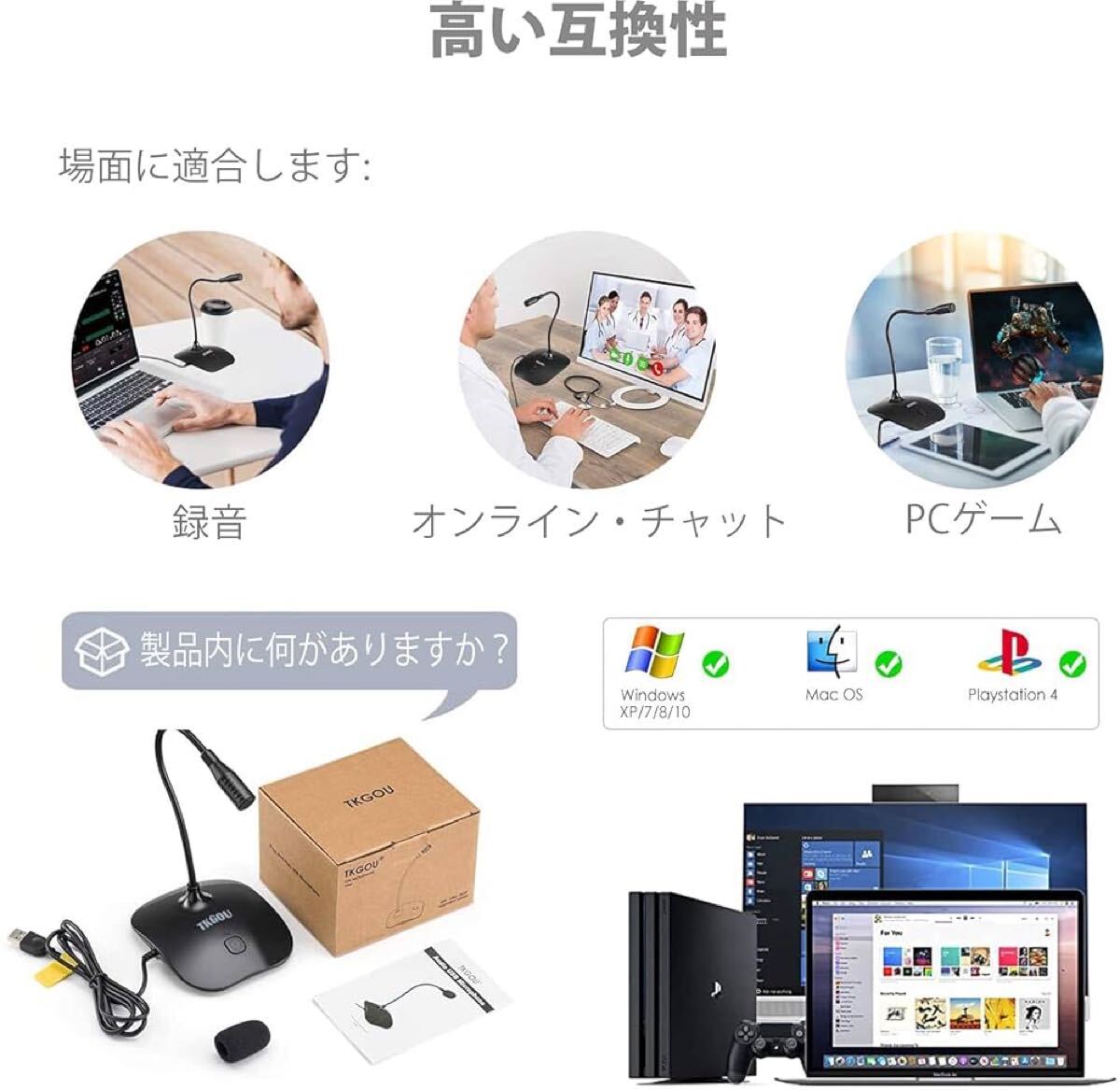 ドライバーのインストールの必要なく、マイクをUSBプラグに差し込むだけで使用できます。マイク入力を一時停止できるミュートスイッチ付きです。Mac OS X Windows Linux などすべてのOSに対応。もちろん、Apple Asus HPでも使用できます。ゲーミングマイク としてPS4などのゲーム用にも最適です。