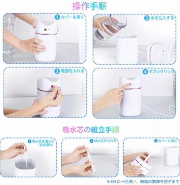 【静音加湿/USB給電】 静音加湿器ですので、寝室、車、オフィスなどに適用しています。 usb給電なので、ノートパソコンやモバイルバッテリーなど接続できる小型加湿器です。