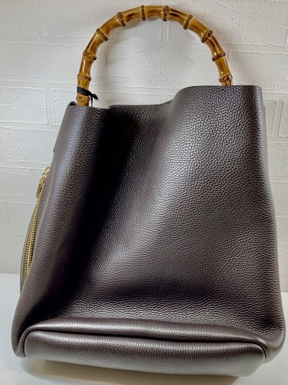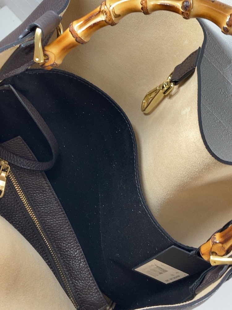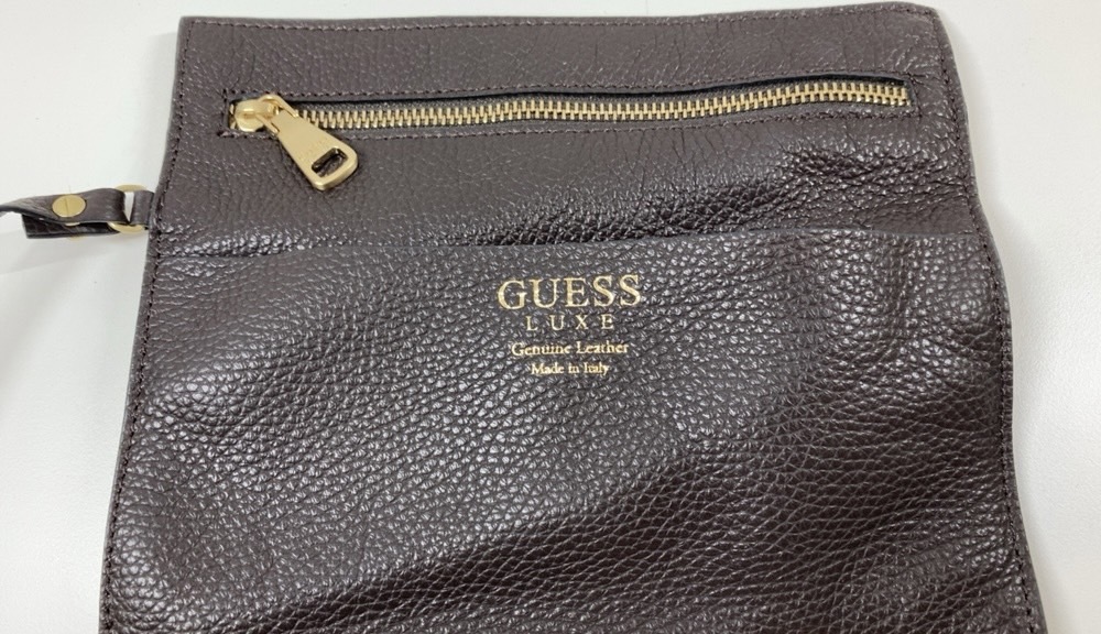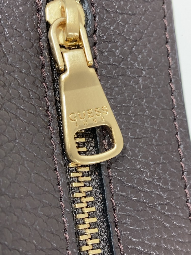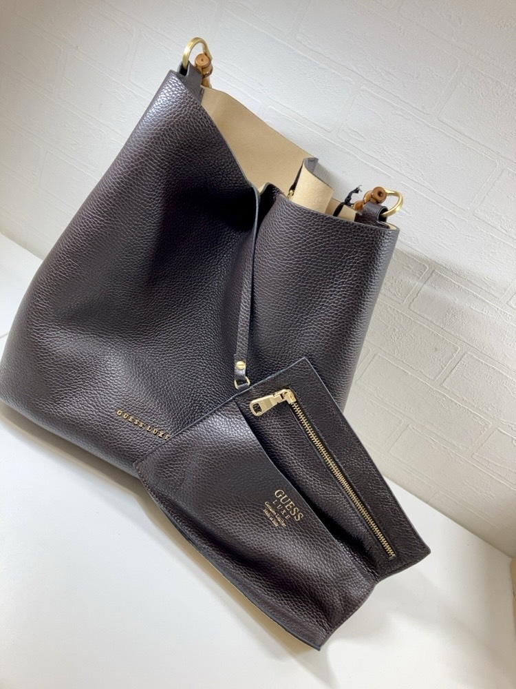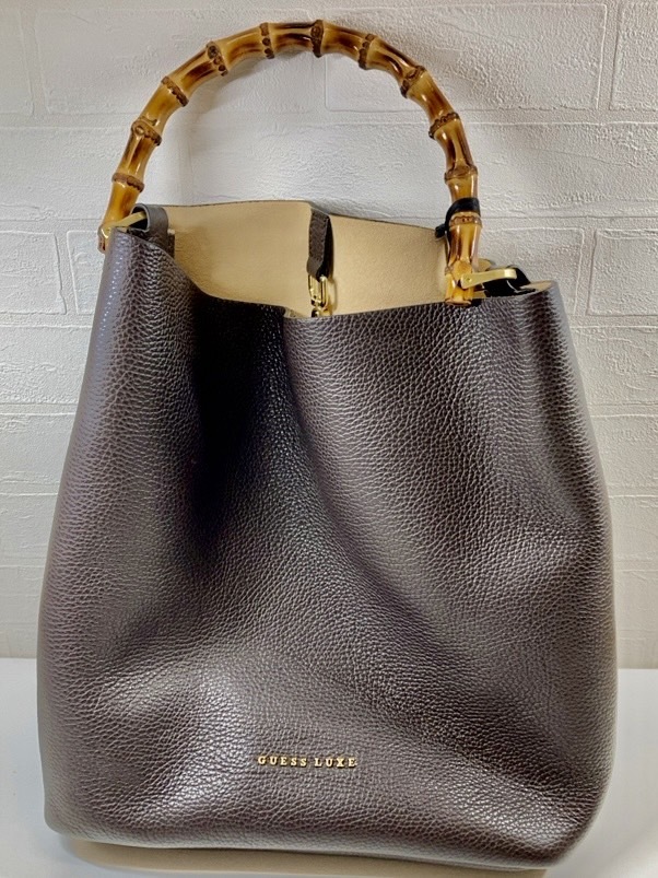 ★GUESS LUXE ゲス バッグ 高級ライン アパレル レディース ブラウン系 オシャレ 竹 ポーチ付き バッグインバッグ