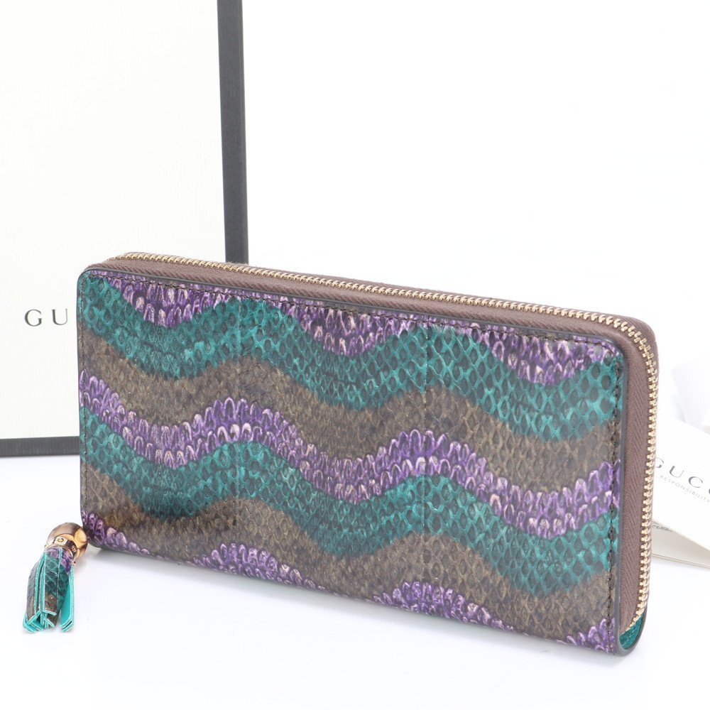 ■未使用■グッチ■バンブー タッセル パイソン レザー 長財布 ロング ウォレット ラウンドファスナー 307984 レディース EEE BX12-4