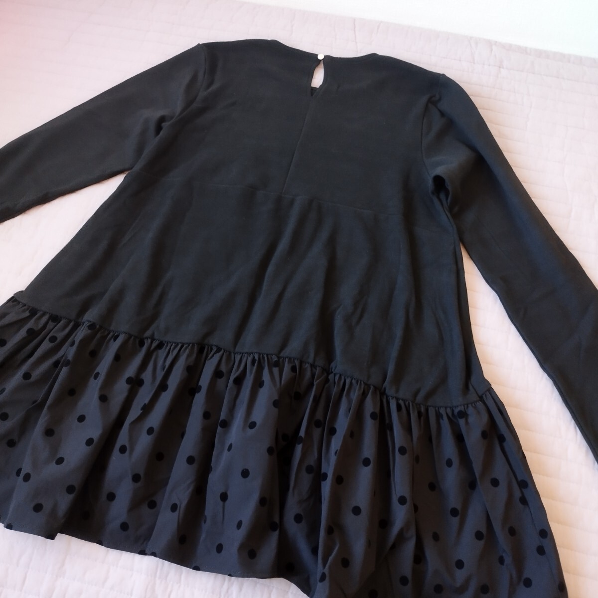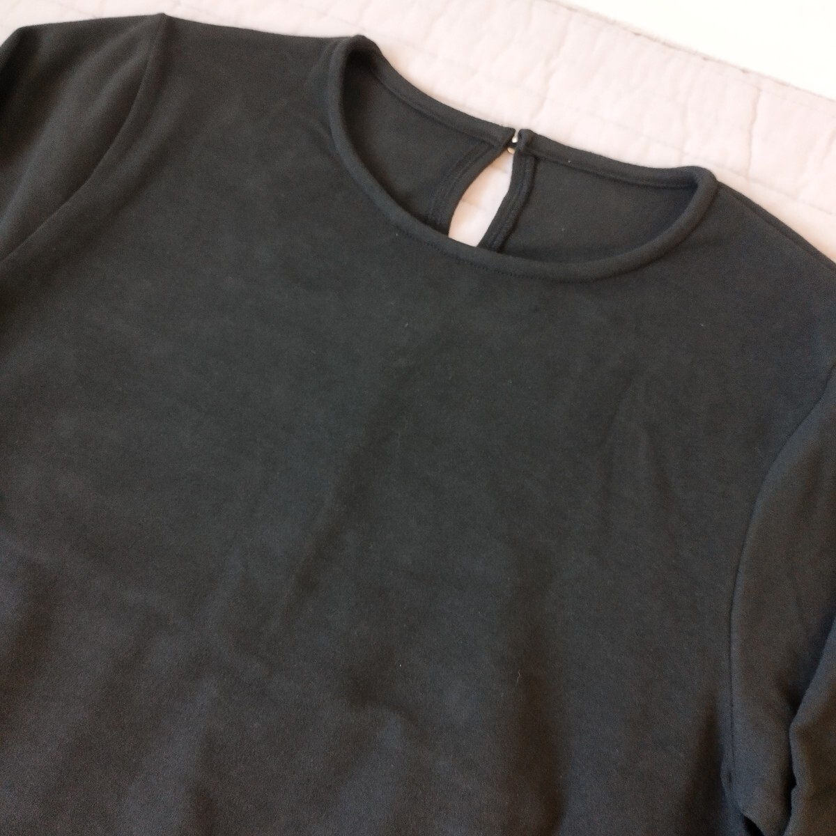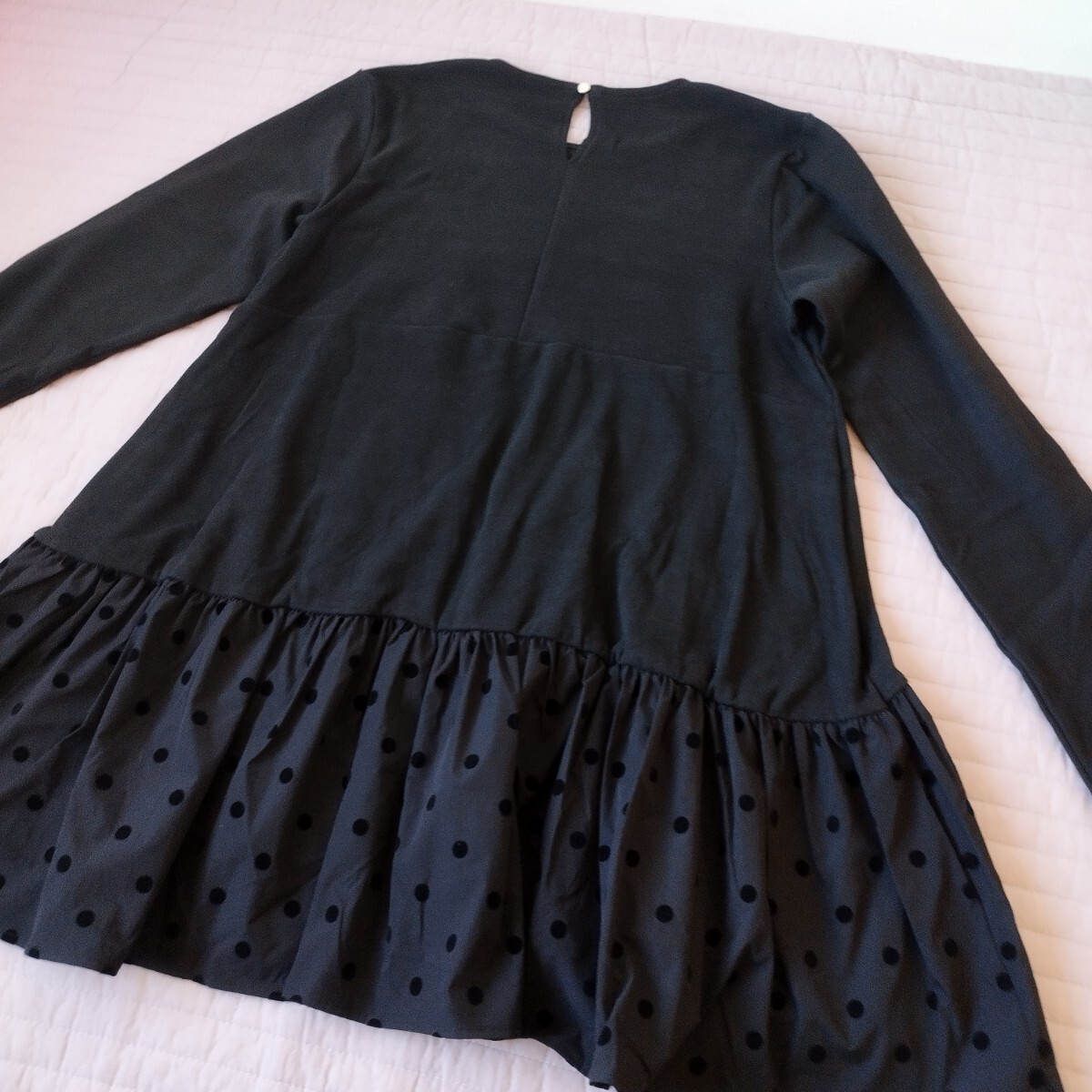 1点のみ 未使用 暖か 起毛感 ロング丈 カットソー Tシャツ M トール 手洗 黒 レイヤード風 異素材使用 裾フロッキードット 匿名 送料無料