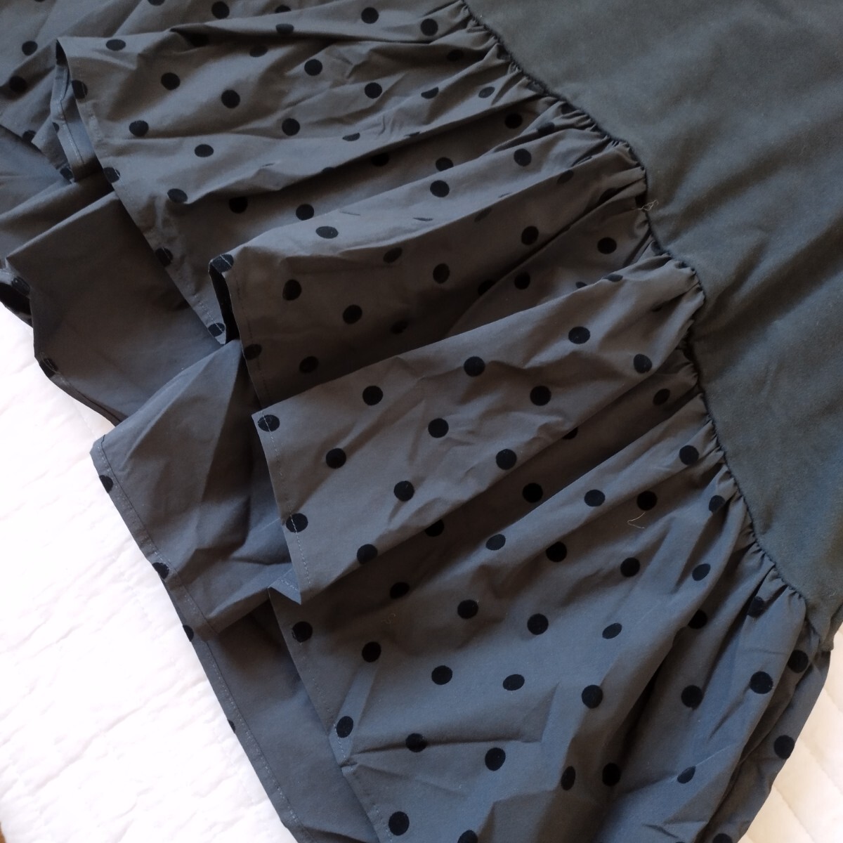 ●裾部分はシャカっとした生地にフロッキー素材の凹凸感あるドット柄。