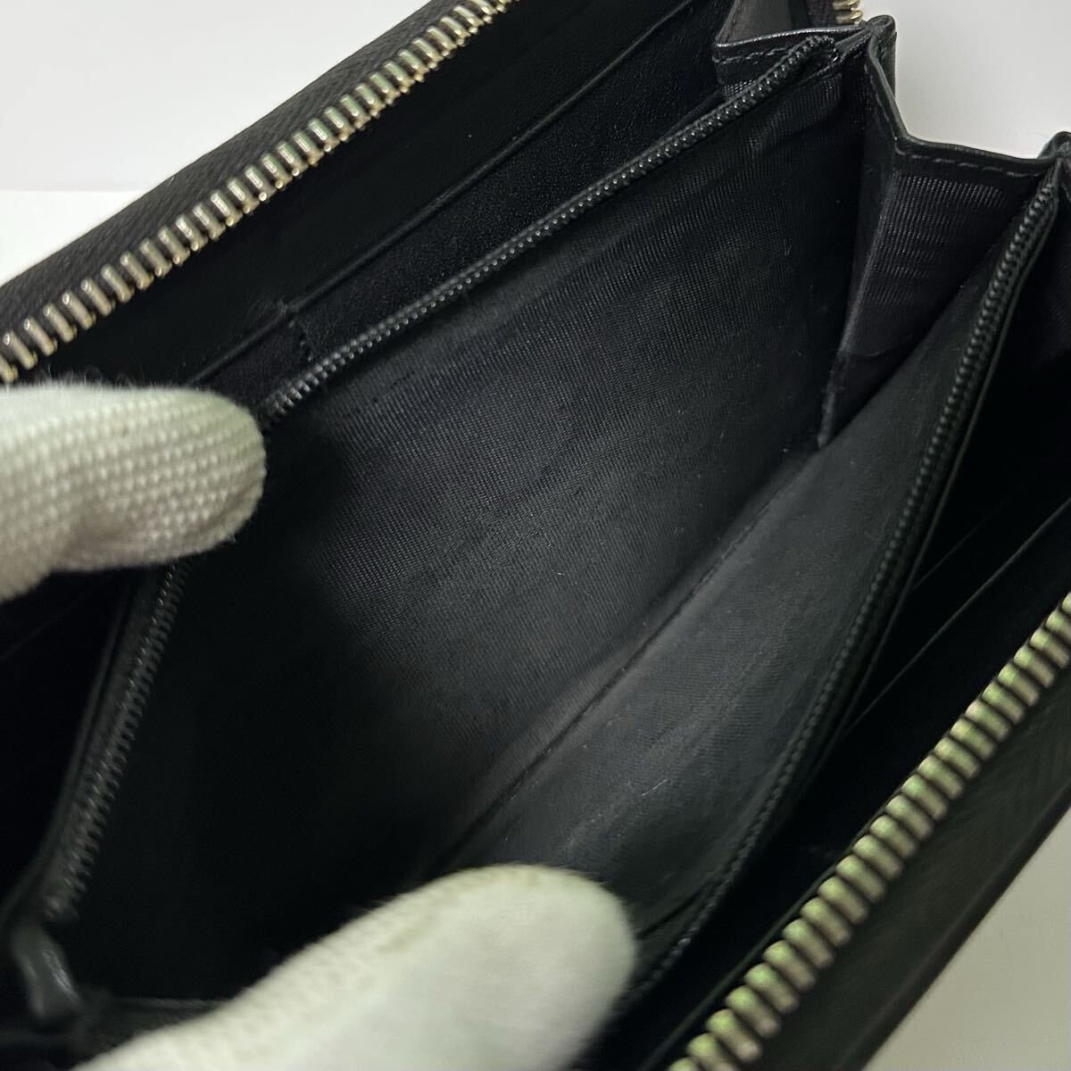 小銭入れのチャックがございません。外側のファスナーは正常ですので、小銭が飛び出すことはないかと思います。その他、目立った傷や汚れは感じられませんでしたので、ぜひご愛用いただければと思います。