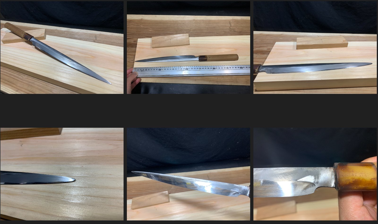 中古 研磨・研ぎ済み 刺身包丁 刃渡230mm 全長395 mm 水牛柄 炭素鋼 手打- Japanese Kitchen Knife - Sashimi