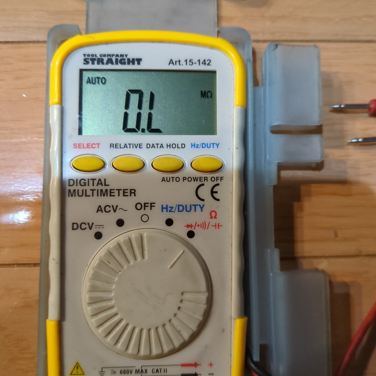 直流電圧(DCV)、交流電圧(ACV)、抵抗(Ω)、導通、ダイオード、周波数/デューティ比(Hz/DUTY)の測定が可能です。