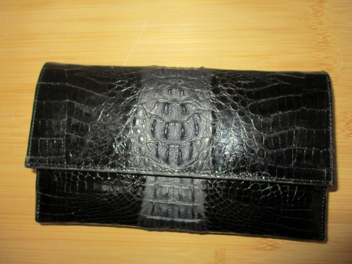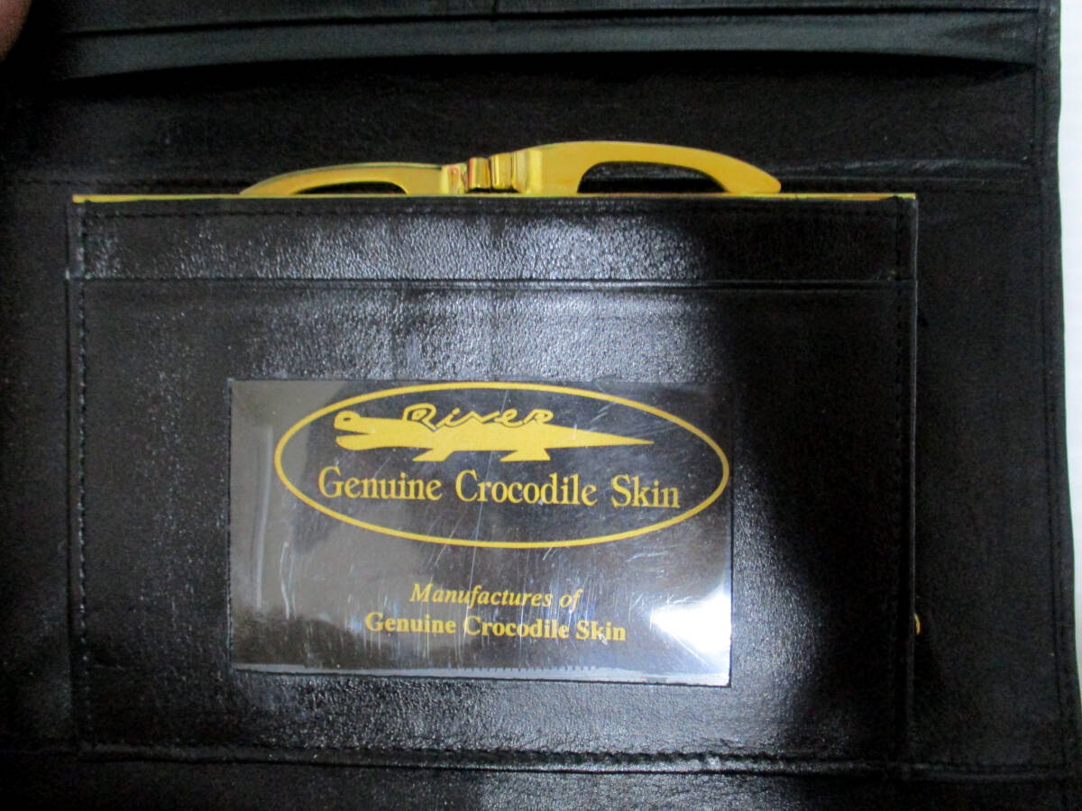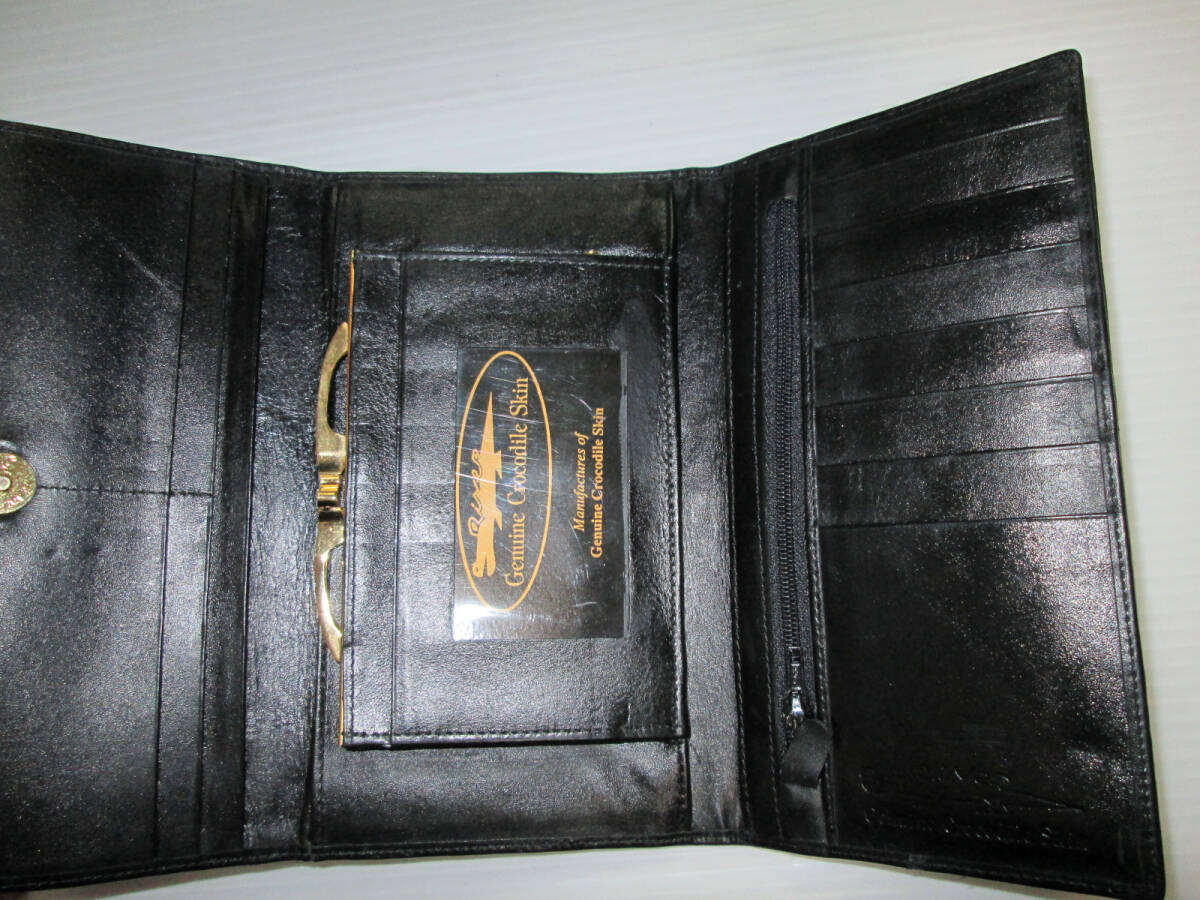 美品★ クロコダイル 長財布 がま口 ワニ革 黒 です。素材はワニ革、クロコダイルレザーです。色は黒です。内側に札入れ、ジップポケット、カード入れ11、がま口ポケットです。他にポケット4つ付きです。