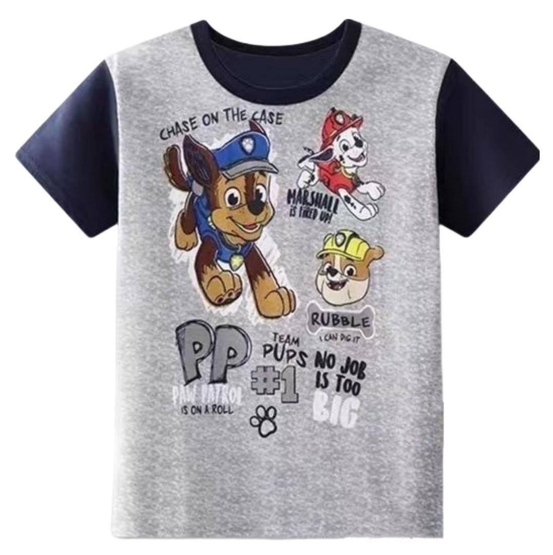 チェイス・マーシャル・ラブルがデザインされたグレー×ネイビーの半袖Tシャツとグレーのショートパンツのセット
