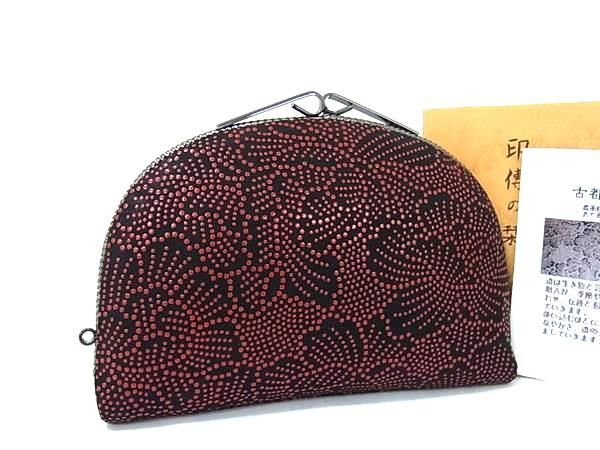 ■新品同様■ INDEN-YA 印傳屋 インデンヤ 漆塗り 鹿革 がま口 コインケース コインパース 小銭入れ ブラック系×レッド系 DG4998