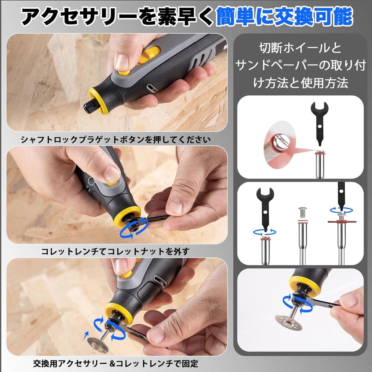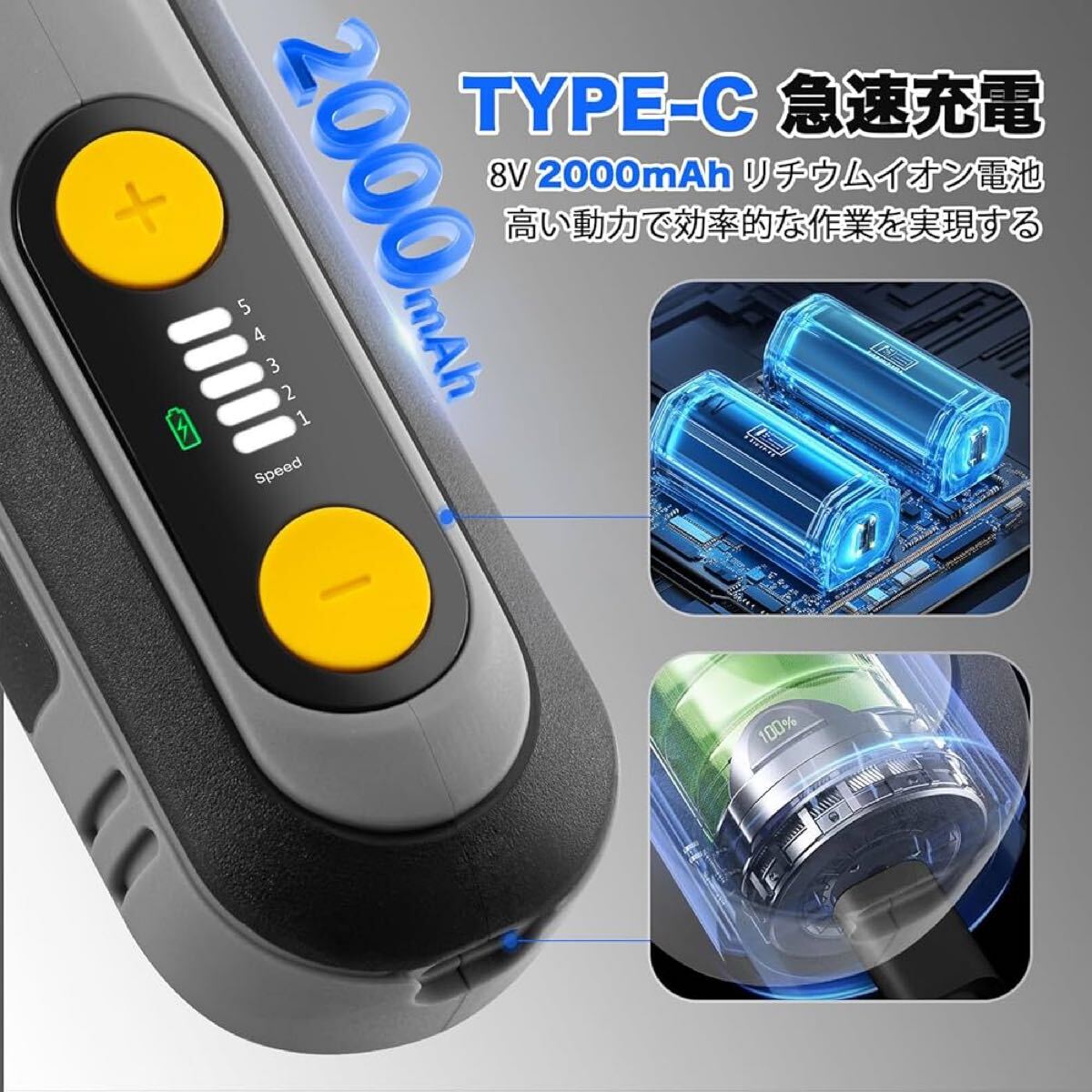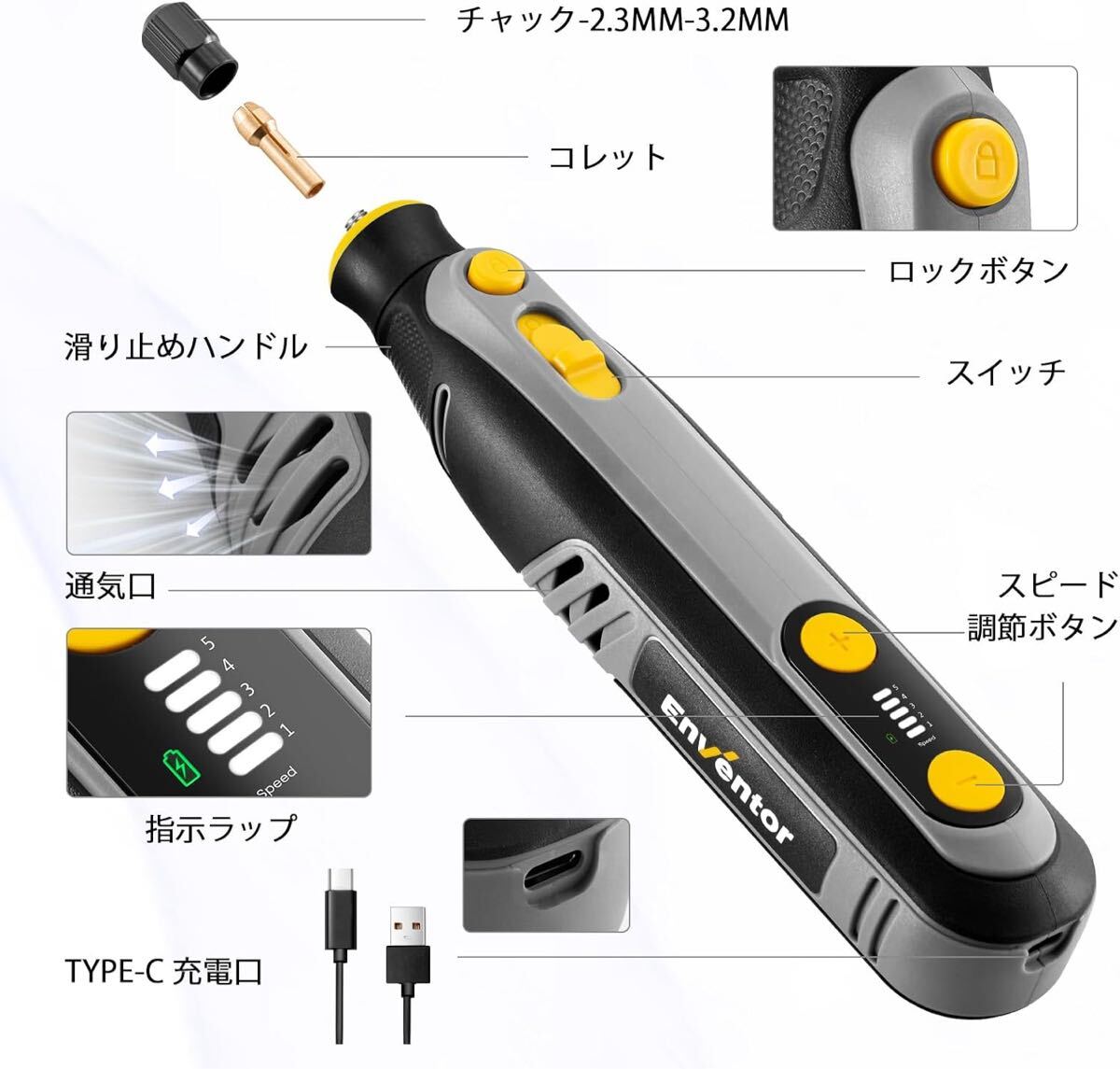 【Type-C充電式&コードレス】リューター充電式のモデルはコードレス式で、作業中に線に邪魔される心配しません。リチウム電池を採用し、USBType-Cで接続して充電できます。